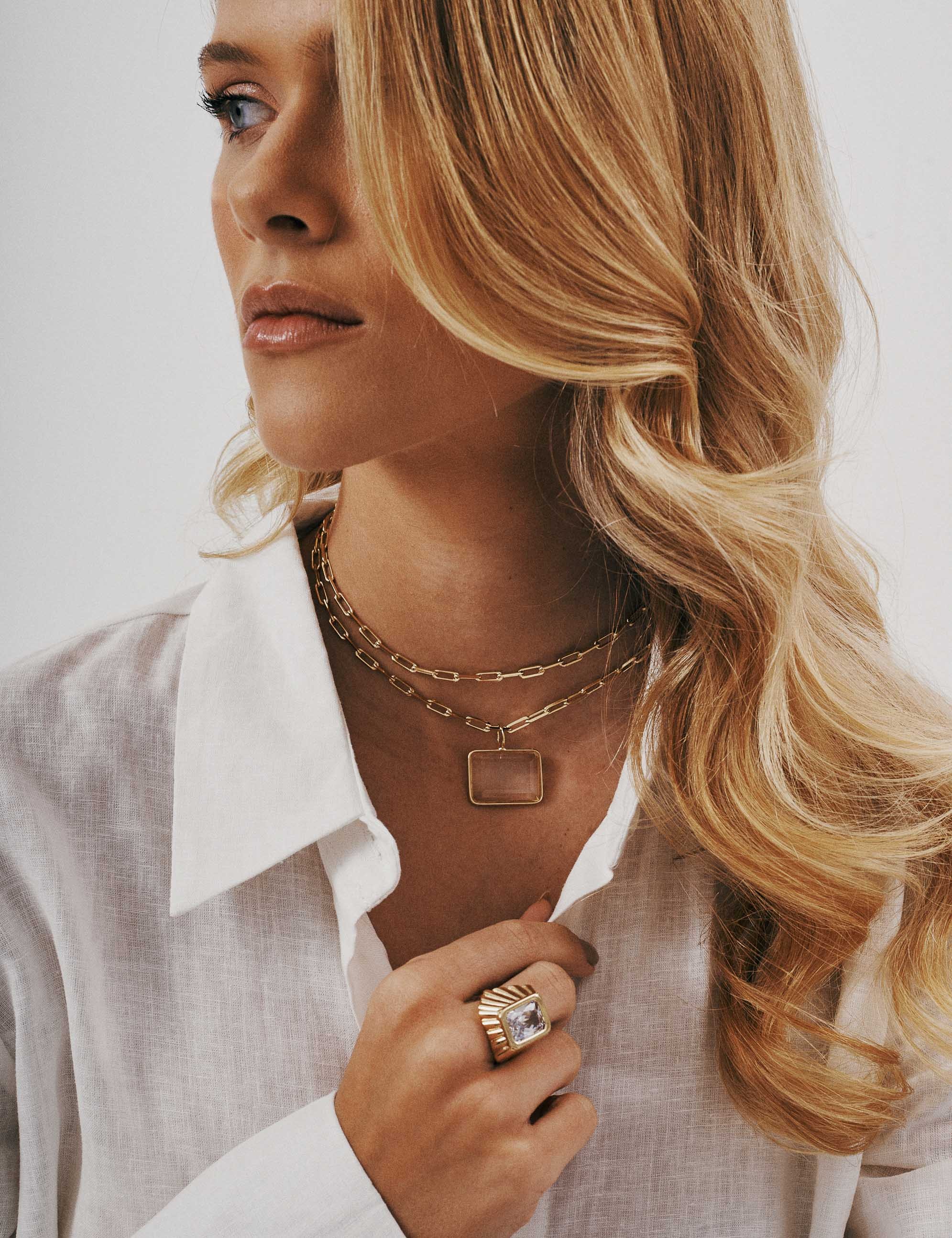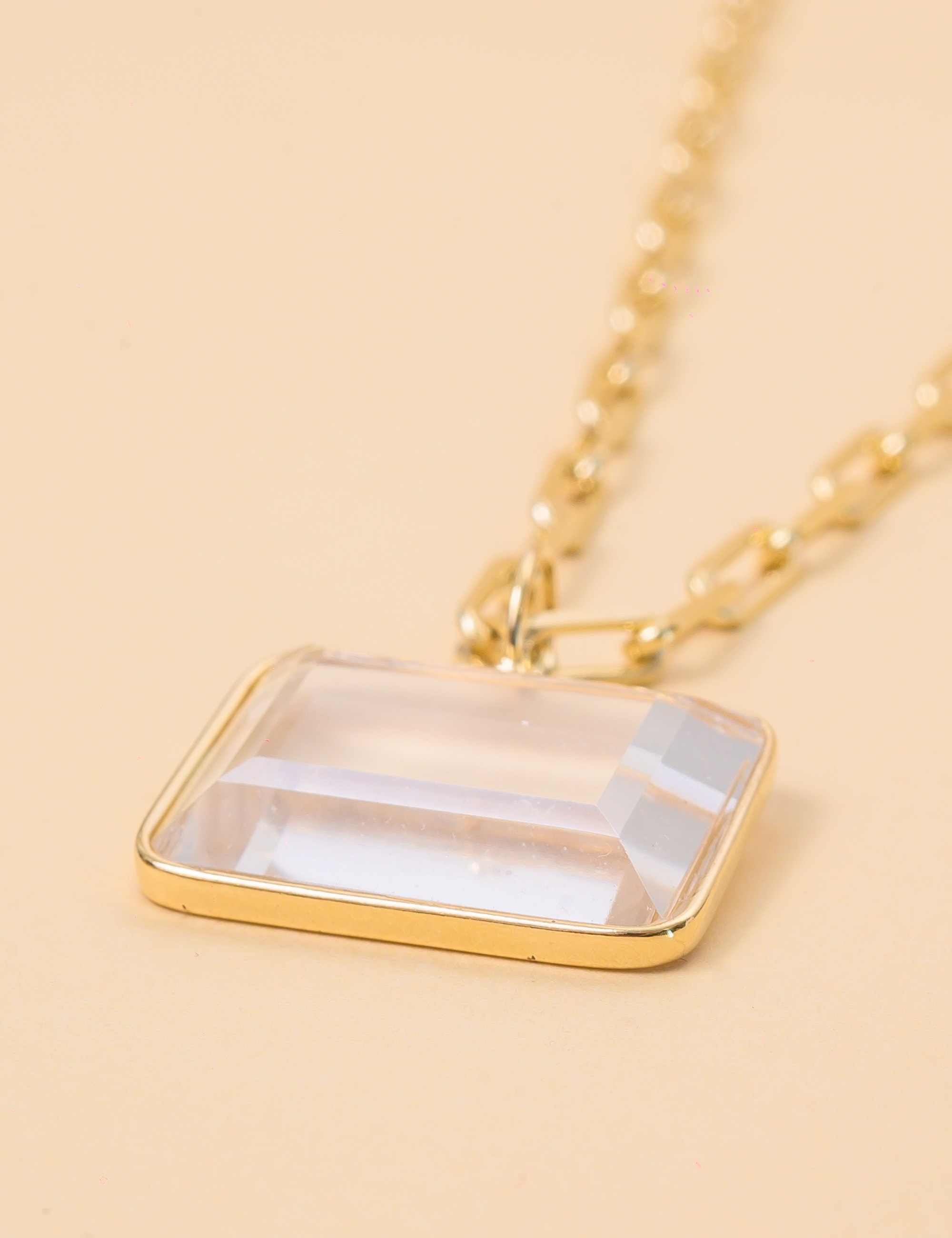 Colar com design sofisticado e atemporal, composto por pingente retangular com cristal resinado que traz brilho na medida certa. Uma peça elegante e versátil, perfeita para complementar qualquer look com personalidade e refinamento.