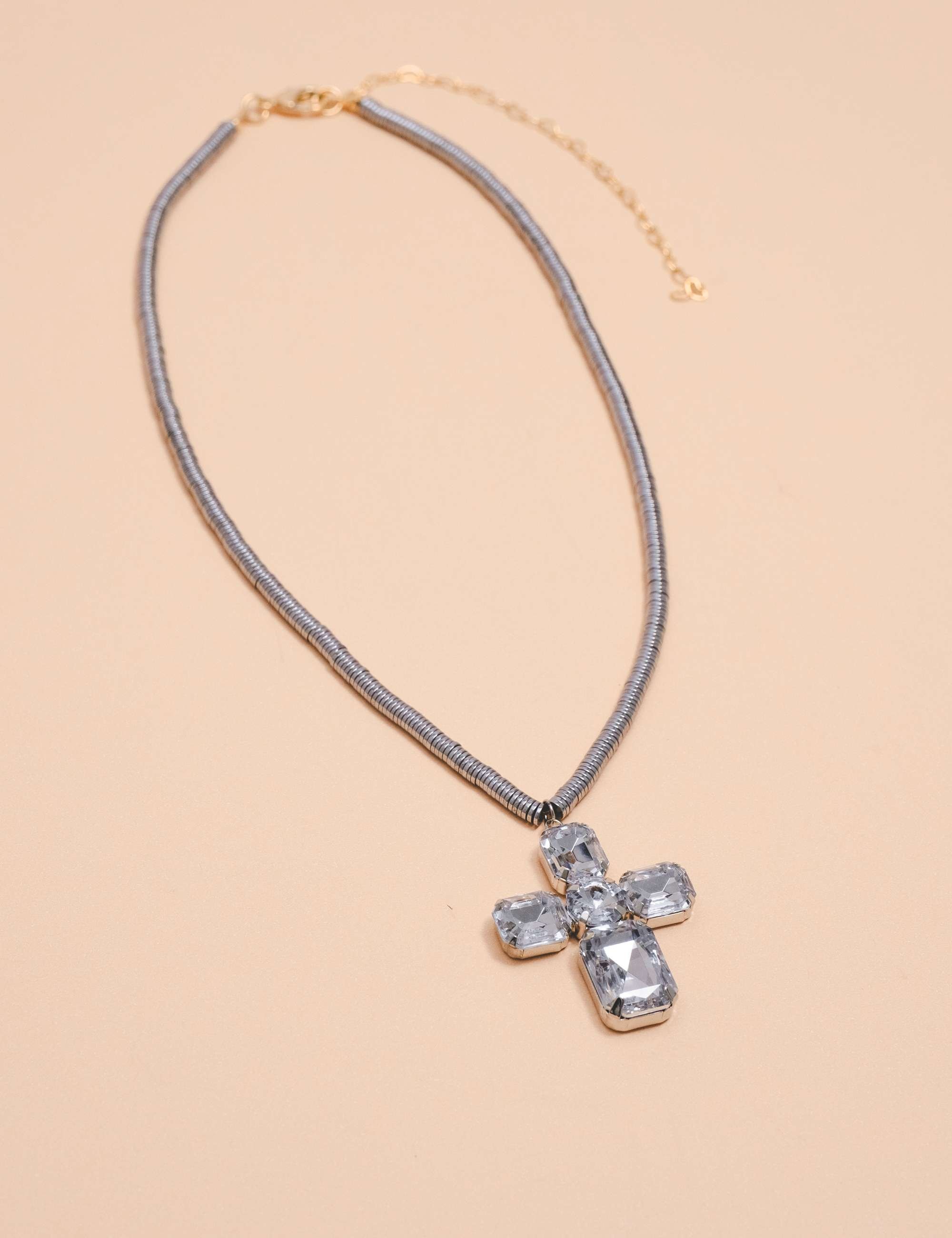 Peça: Colar com um pingente de cruz , realçado por sutis variações de cores. Esta peça combina o simbolismo tradicional da cruz com um toque moderno, adicionando um elemento de estilo e significado ao visual de forma sutil e encantadora.
