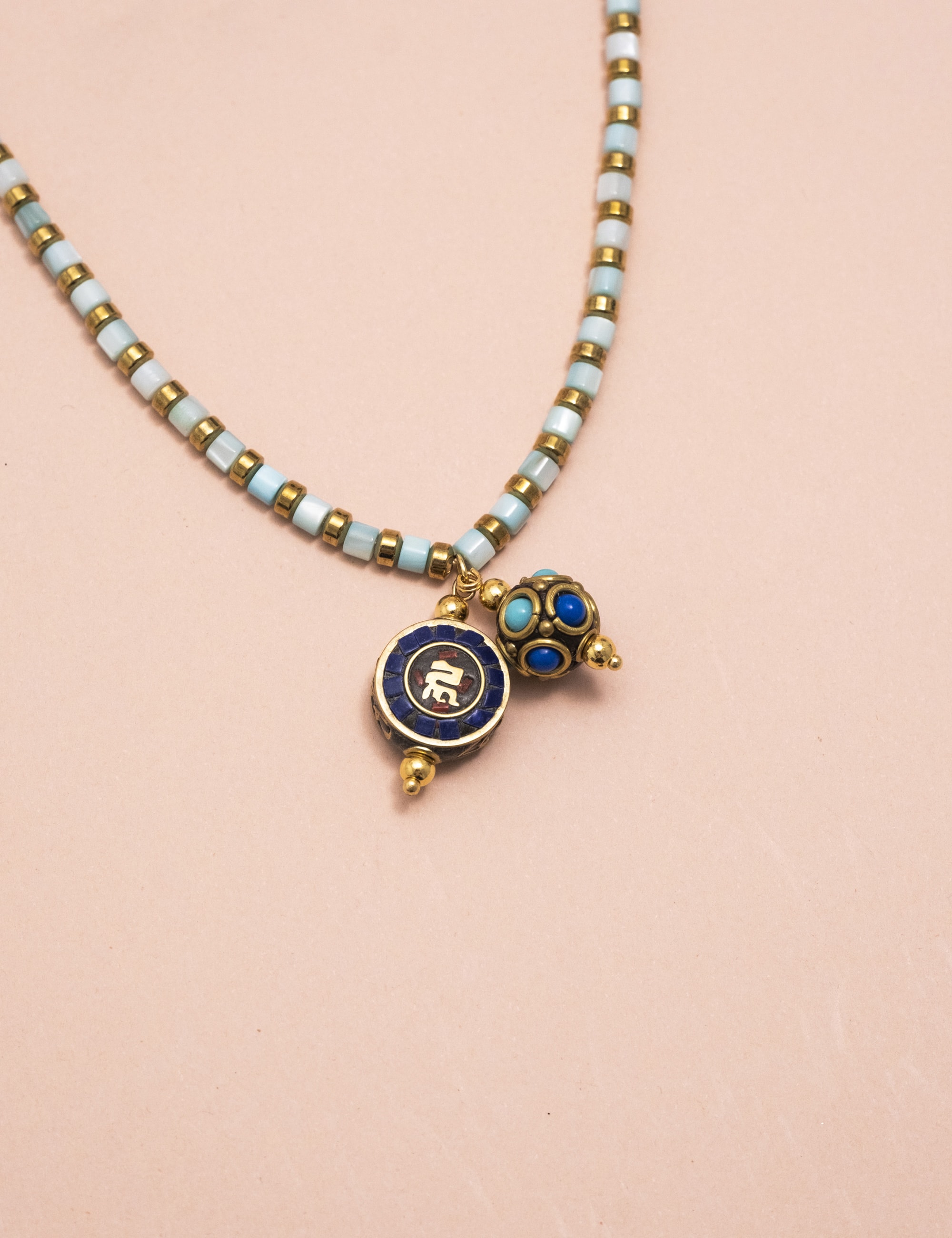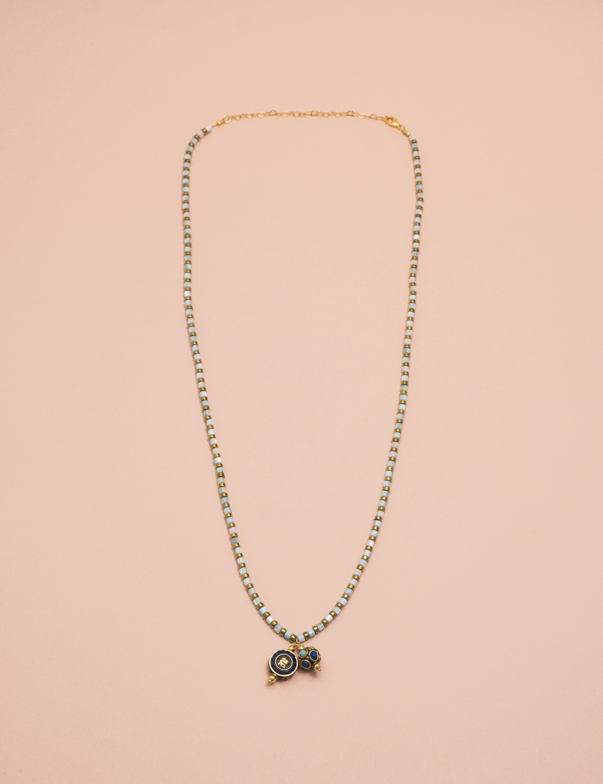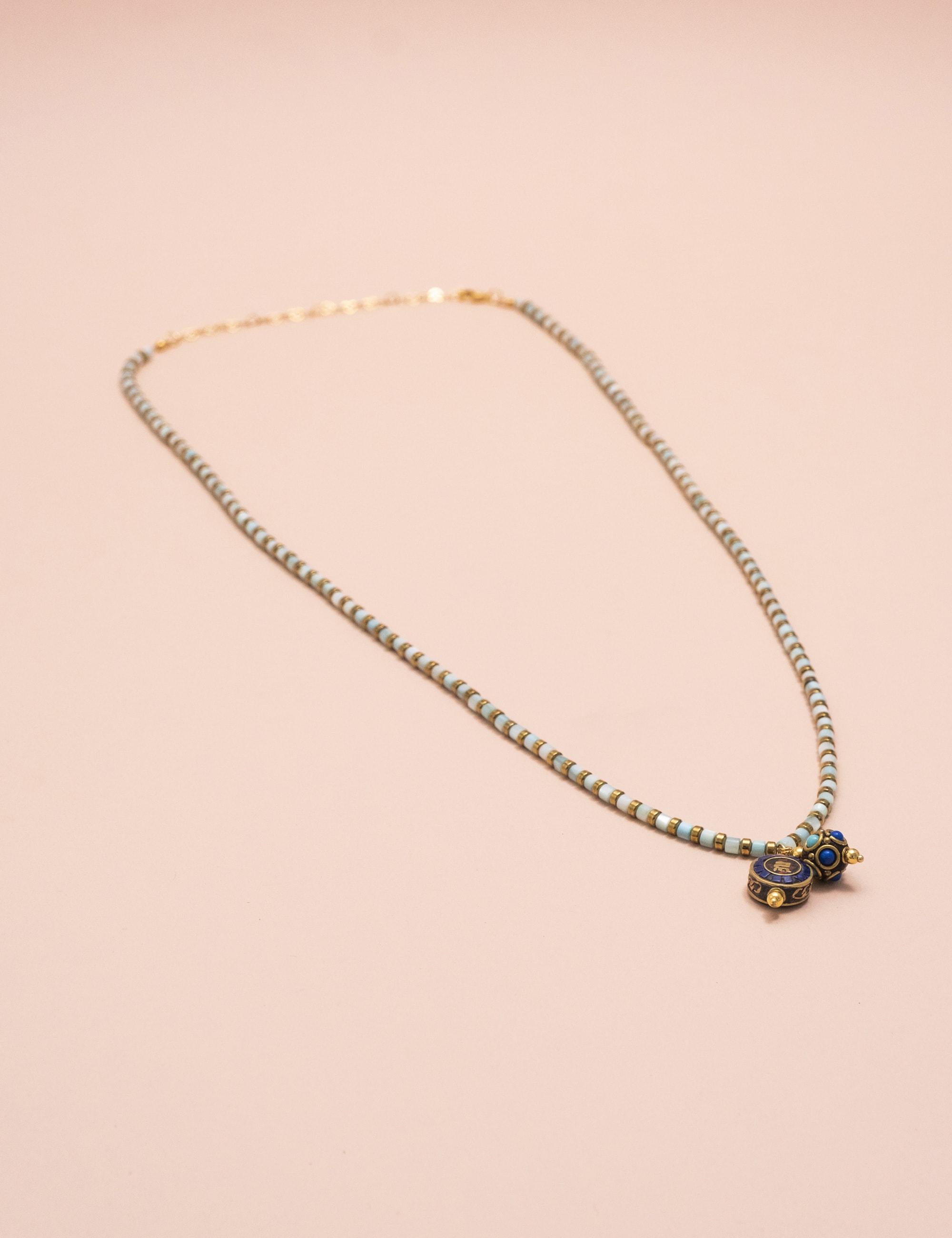 Colar Delicado de Esferas de Pedra Jade Azul -CO29253VO02