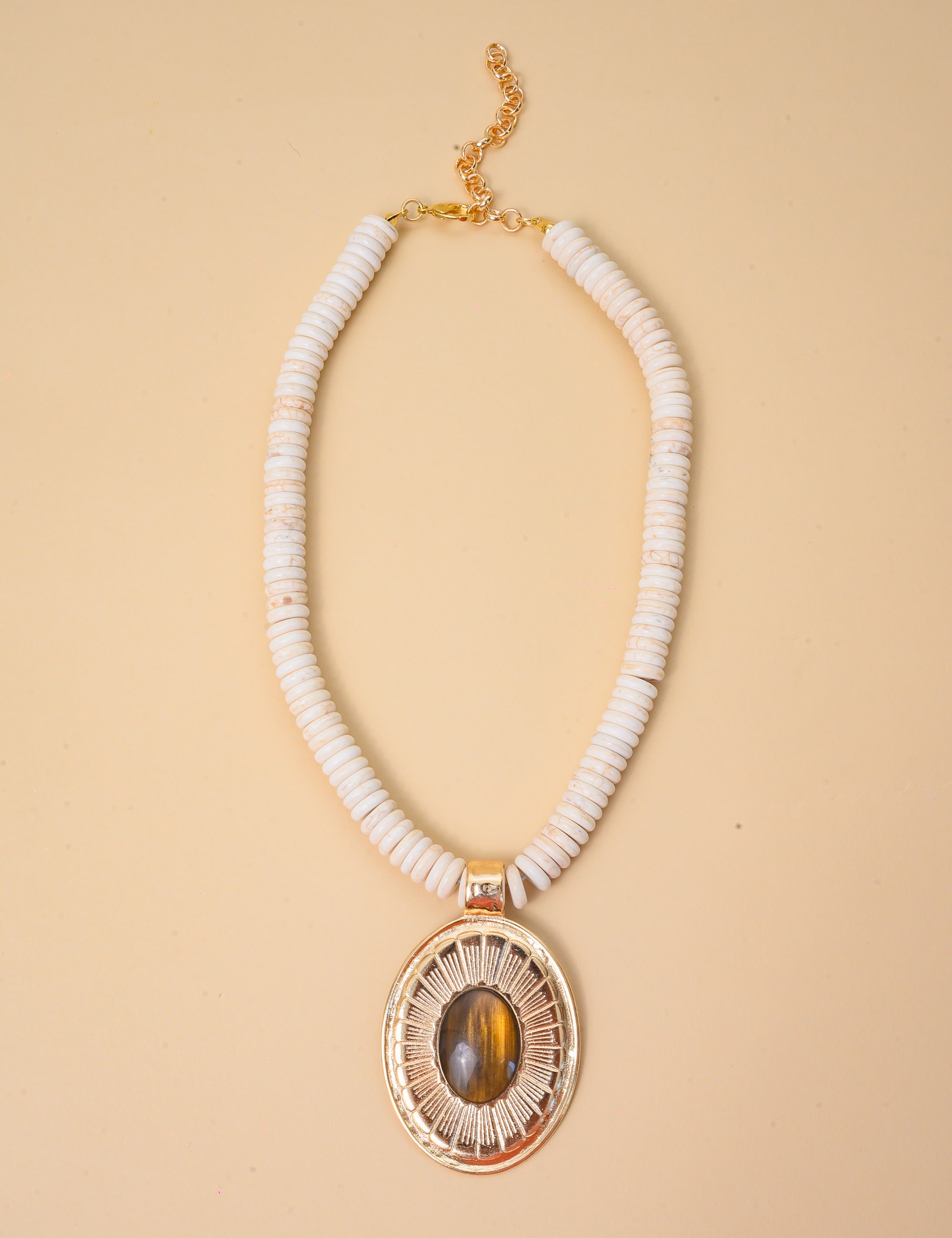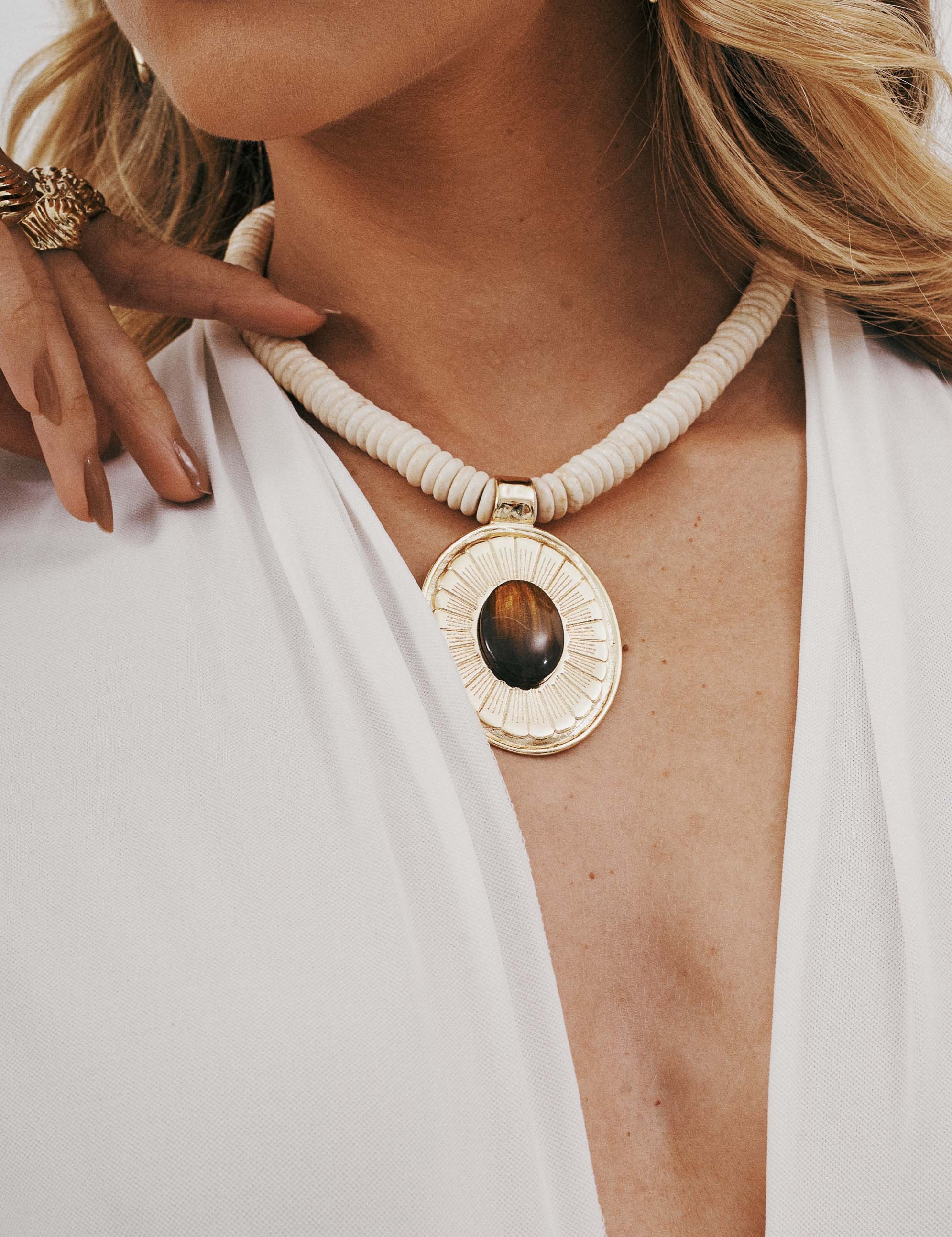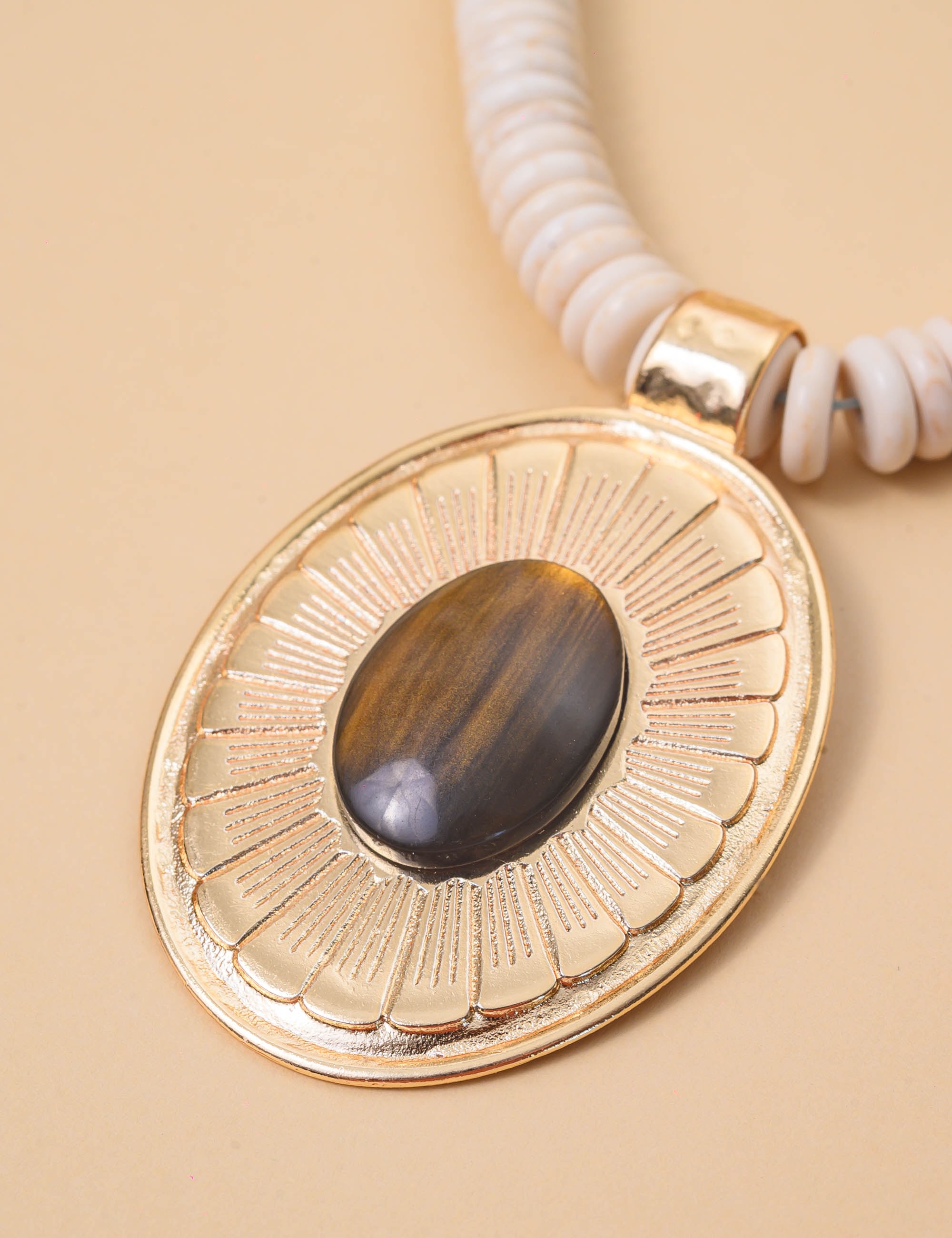 Colar com pedra e pingente oval tartaruga, elegante e versátil. Ideal para dar um toque de estilo ao seu look.
