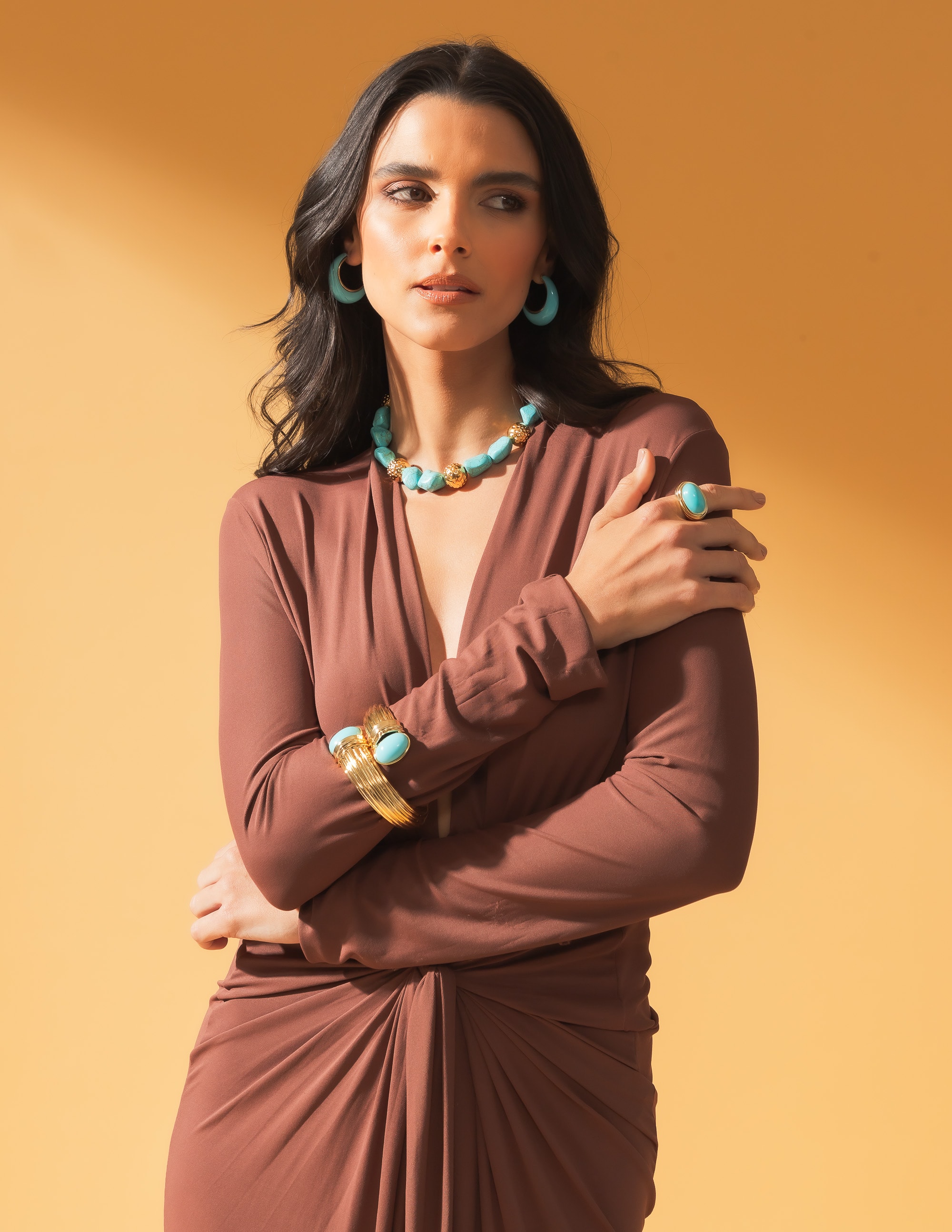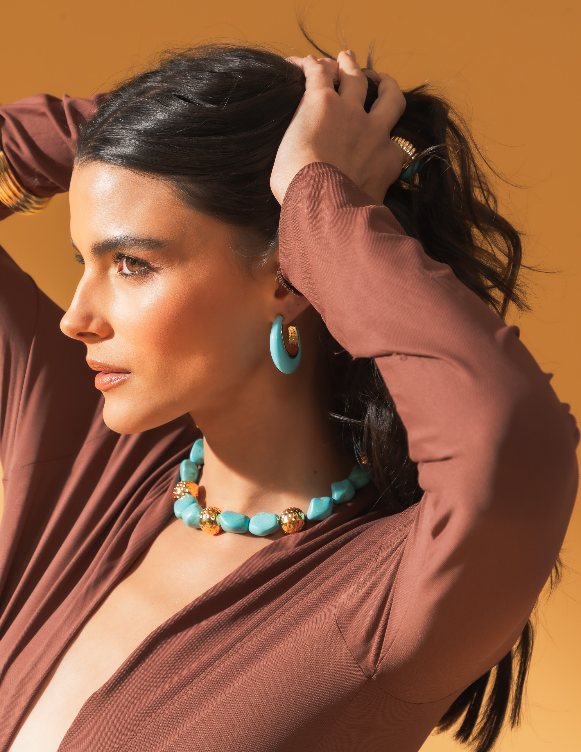 COLAR CURTO PEDRA TURQUESA - CO29049VO01
