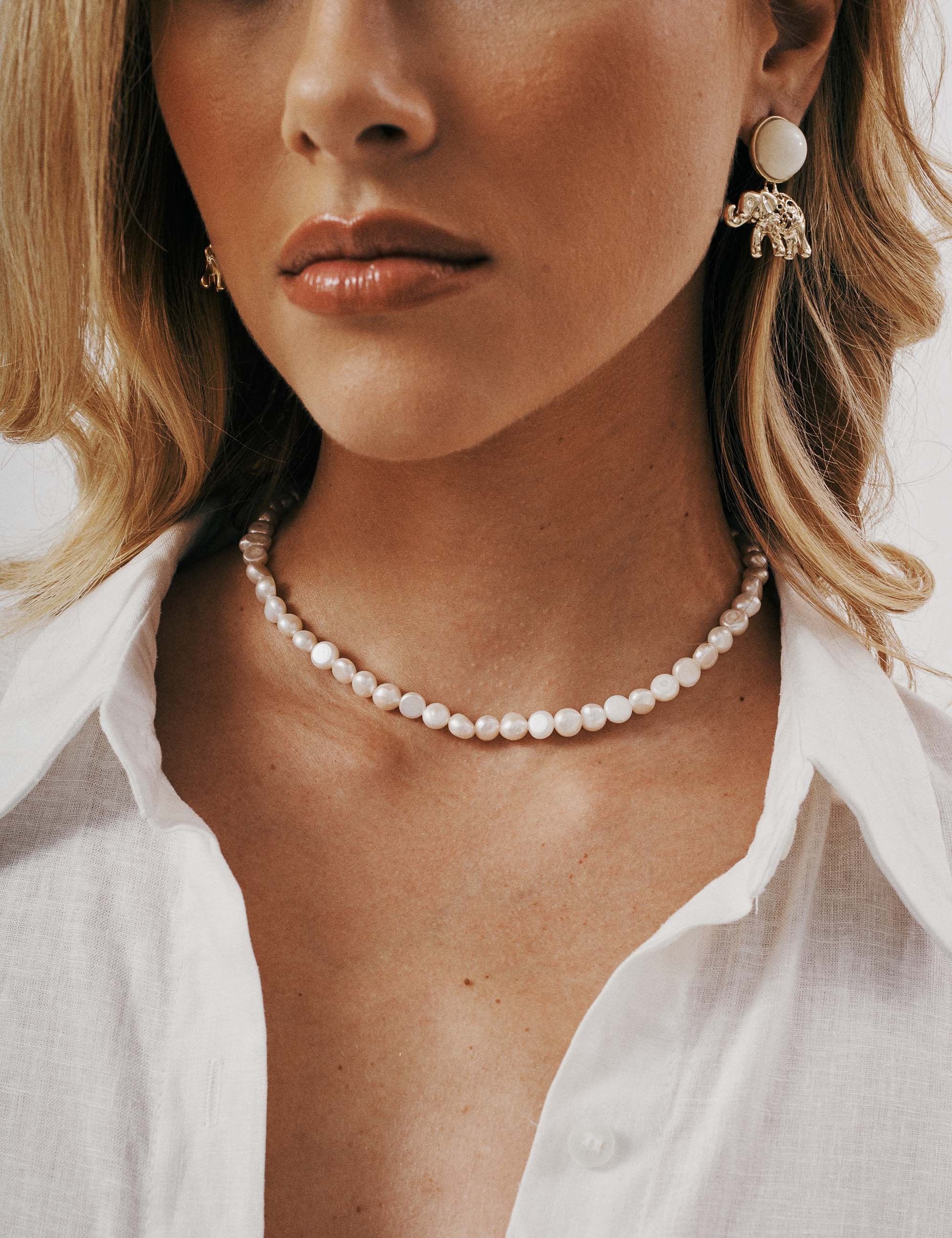 Colar com pérola barroca, elegante e atemporal. Perfeito para adicionar um toque sofisticado e natural ao seu visual.