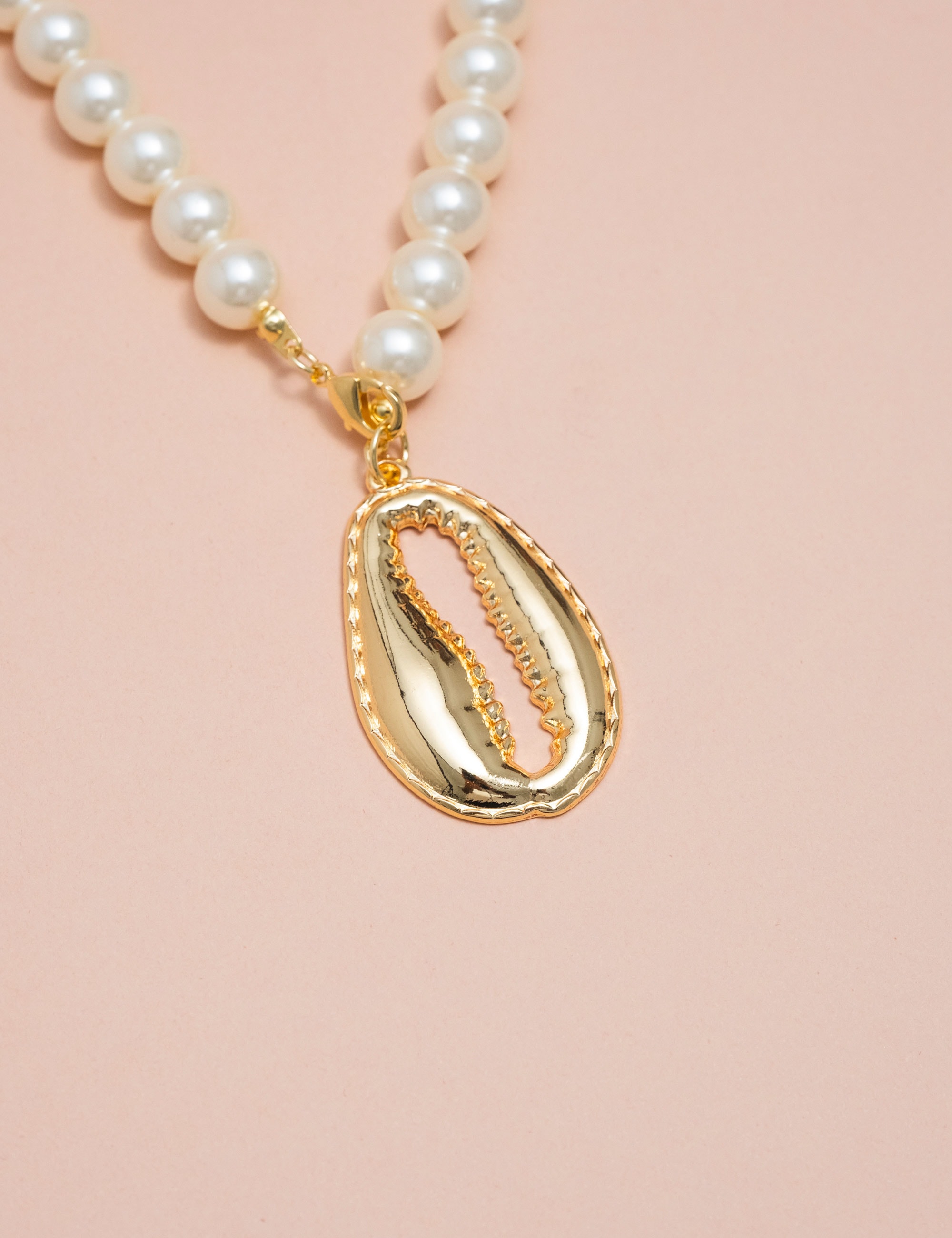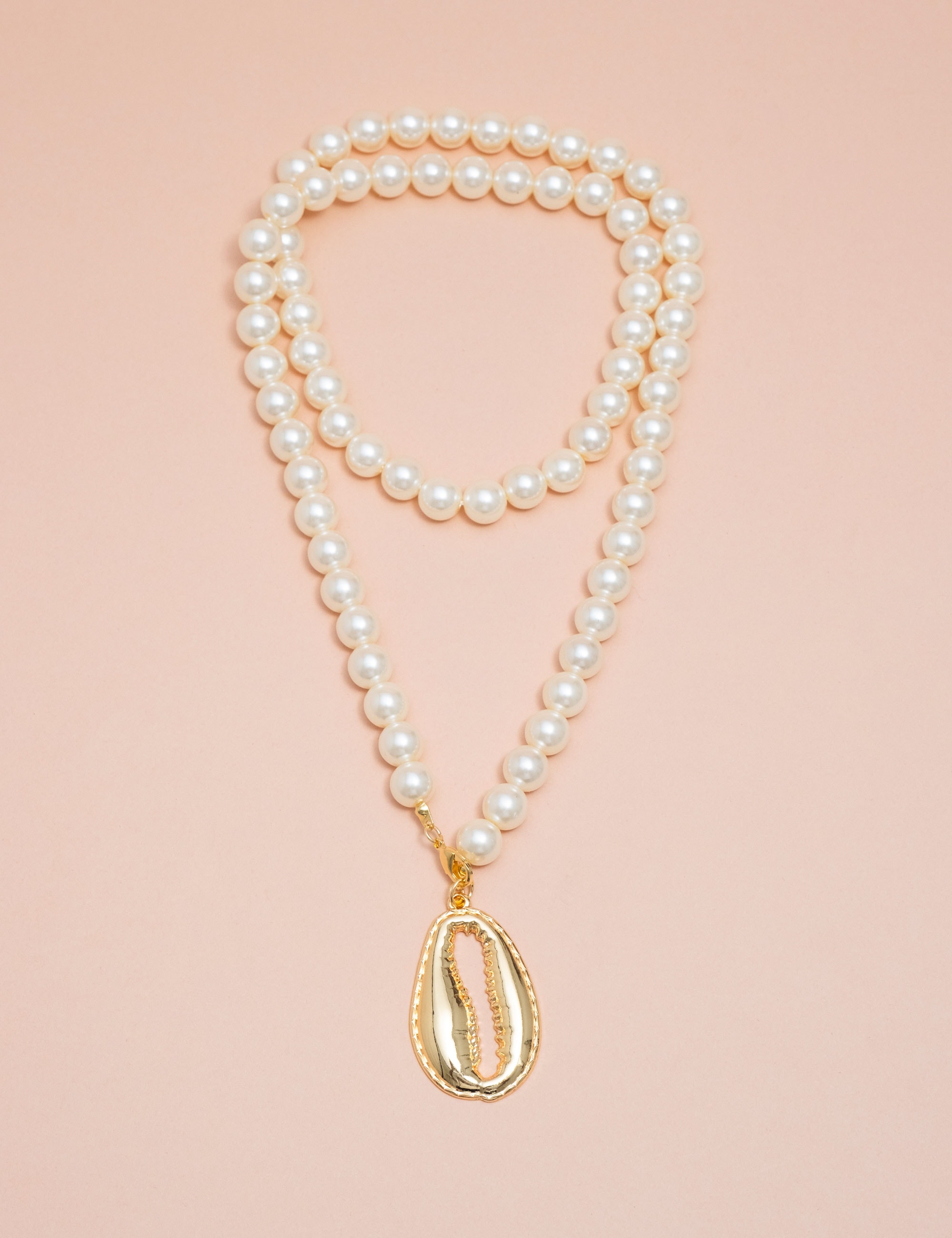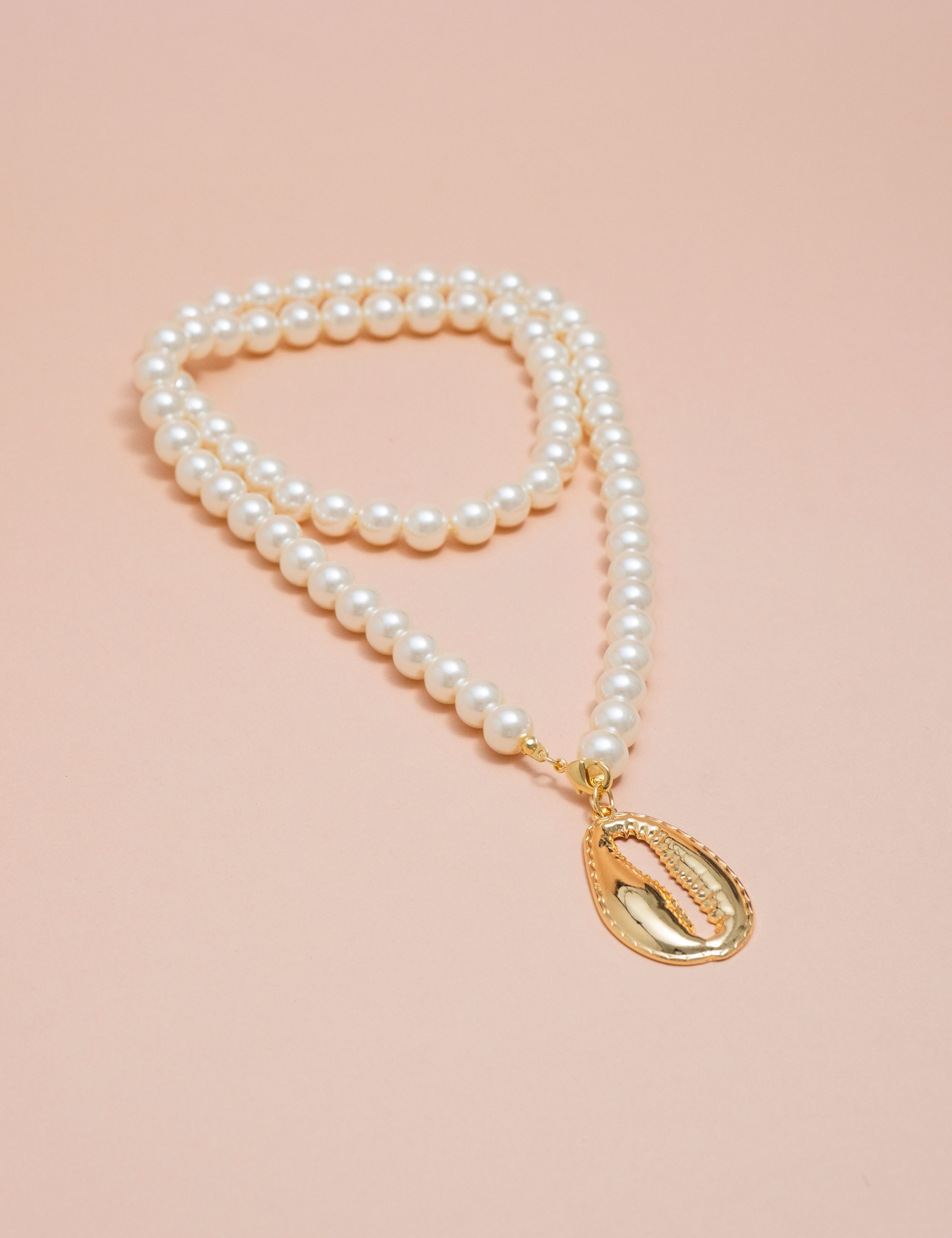 Peça: Colar banhado a ouro com pérolas resinadas, com pingente em formato de buzio. Este colar exala sofisticação e é perfeito para quem aprecia um toque de glamour em seu estilo diário.