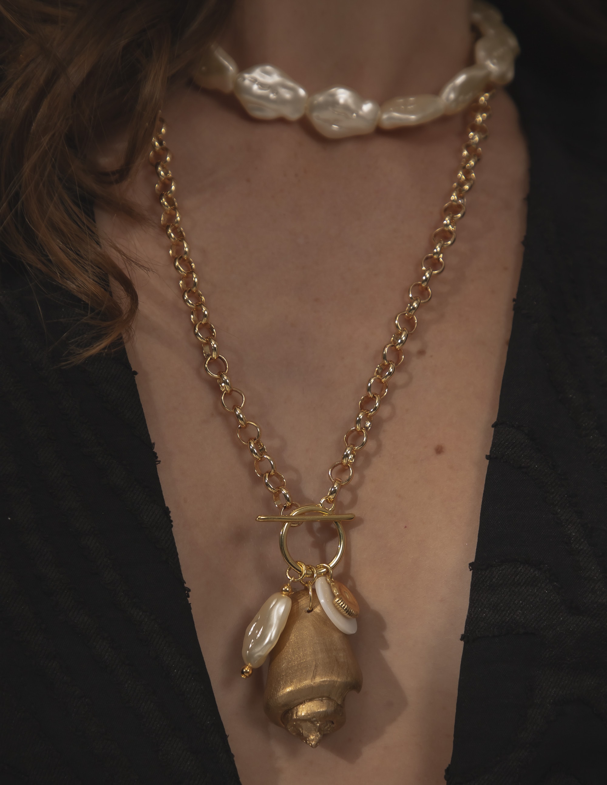 Peça: O colar de pérola resinada, é a peça perfeita para quem busca unir o clássico ao contemporâneo. Este acessório combina a beleza única das pérolas barrocas, com suas formas irregulares e naturais, com o charme rústico e autêntico.
