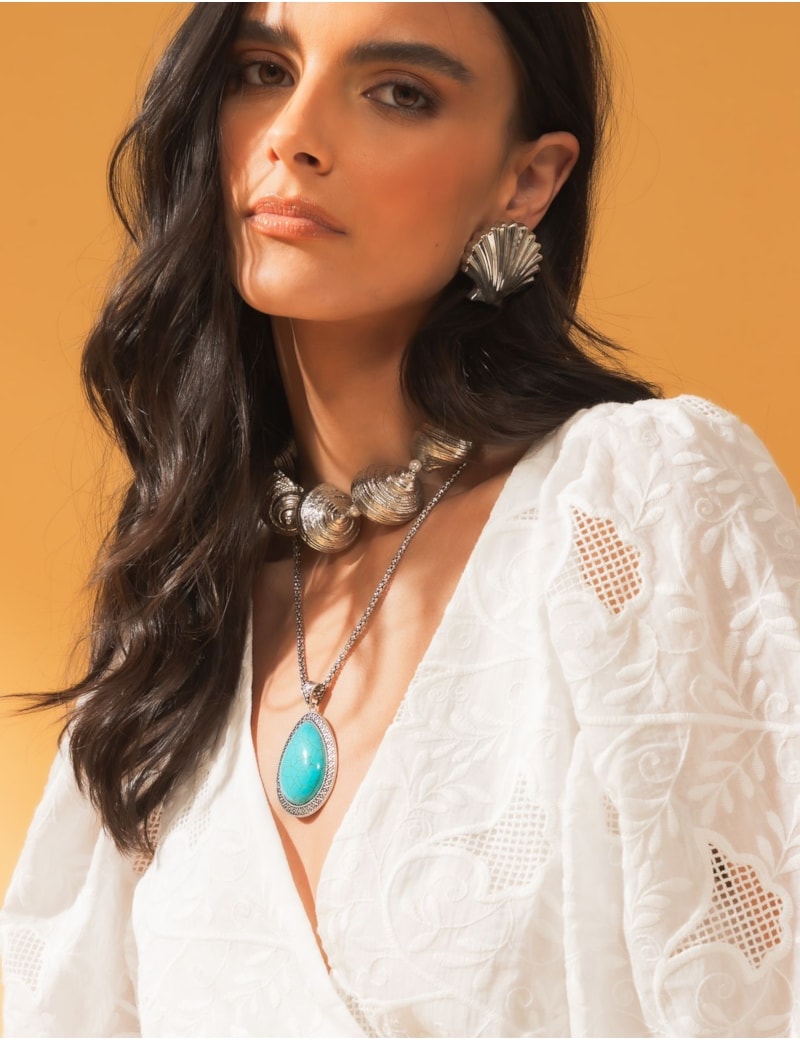Colar Perola Concha Silver