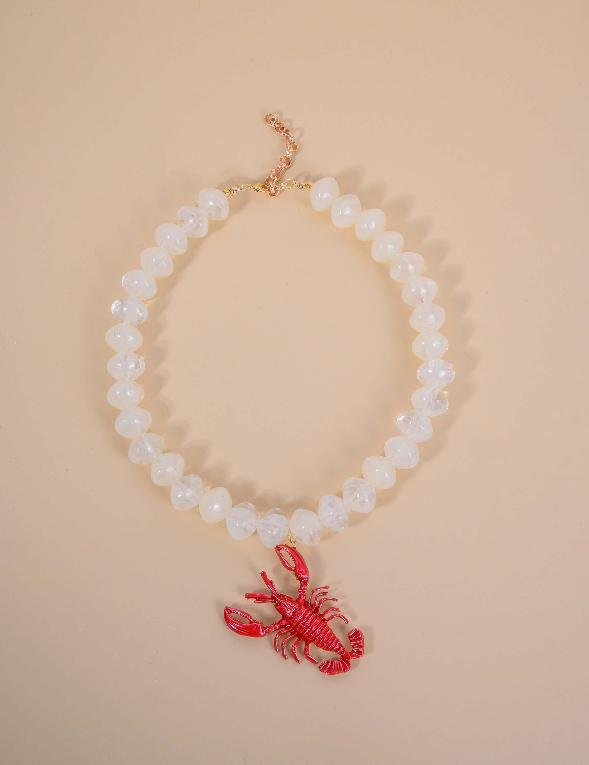 Colar de cristais perolados com pingente de lagosta, sofisticado e cheio de personalidade. O brilho elegante dos cristais encontra o design moderno do pingente, criando um visual exclusivo e marcante.