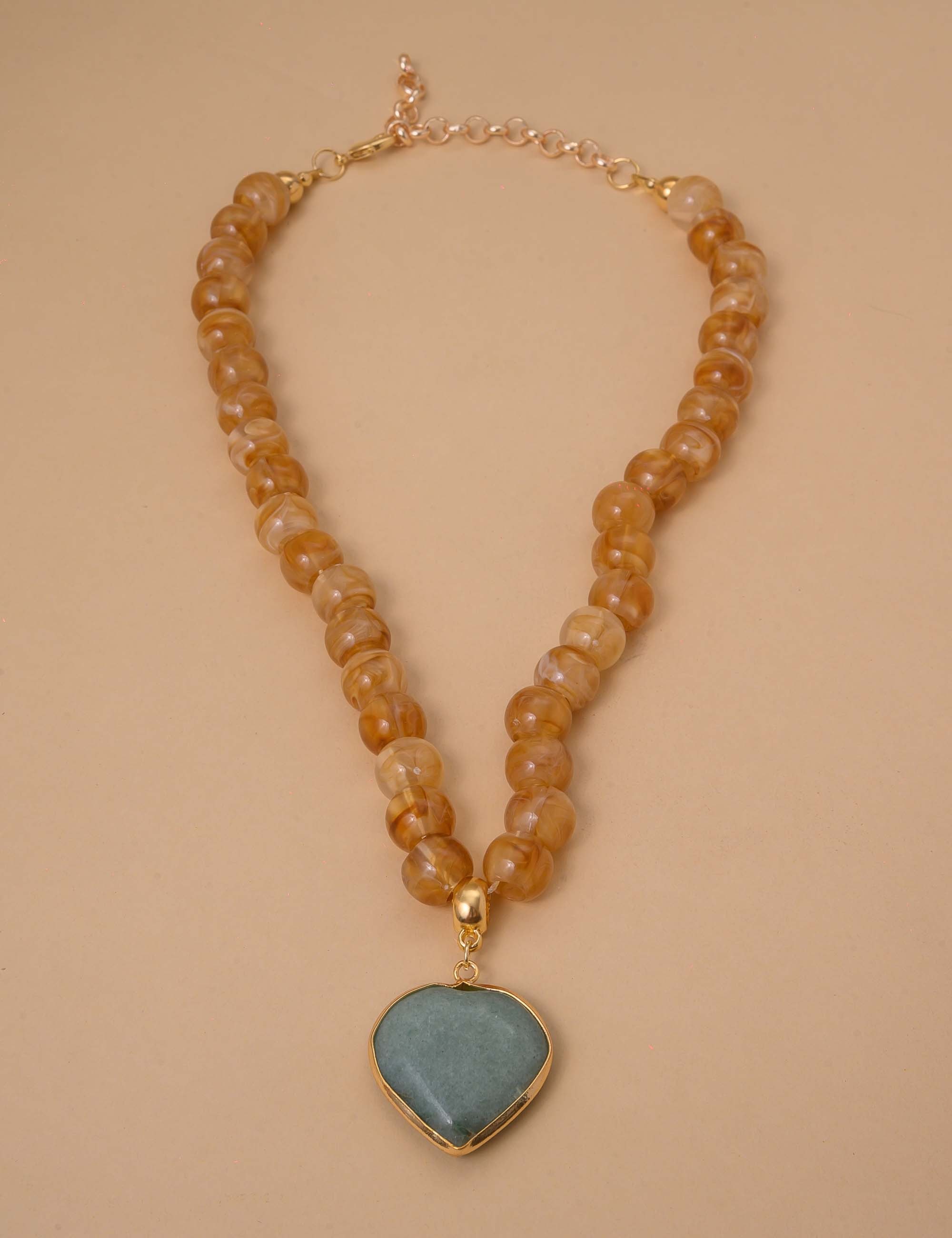Colar com quartzo verde e detalhe em resina laranja, uma peça marcante que combina elegância e modernidade. A harmonia entre o verde sofisticado e o toque vibrante da resina cria um visual autêntico e cheio de personalidade.