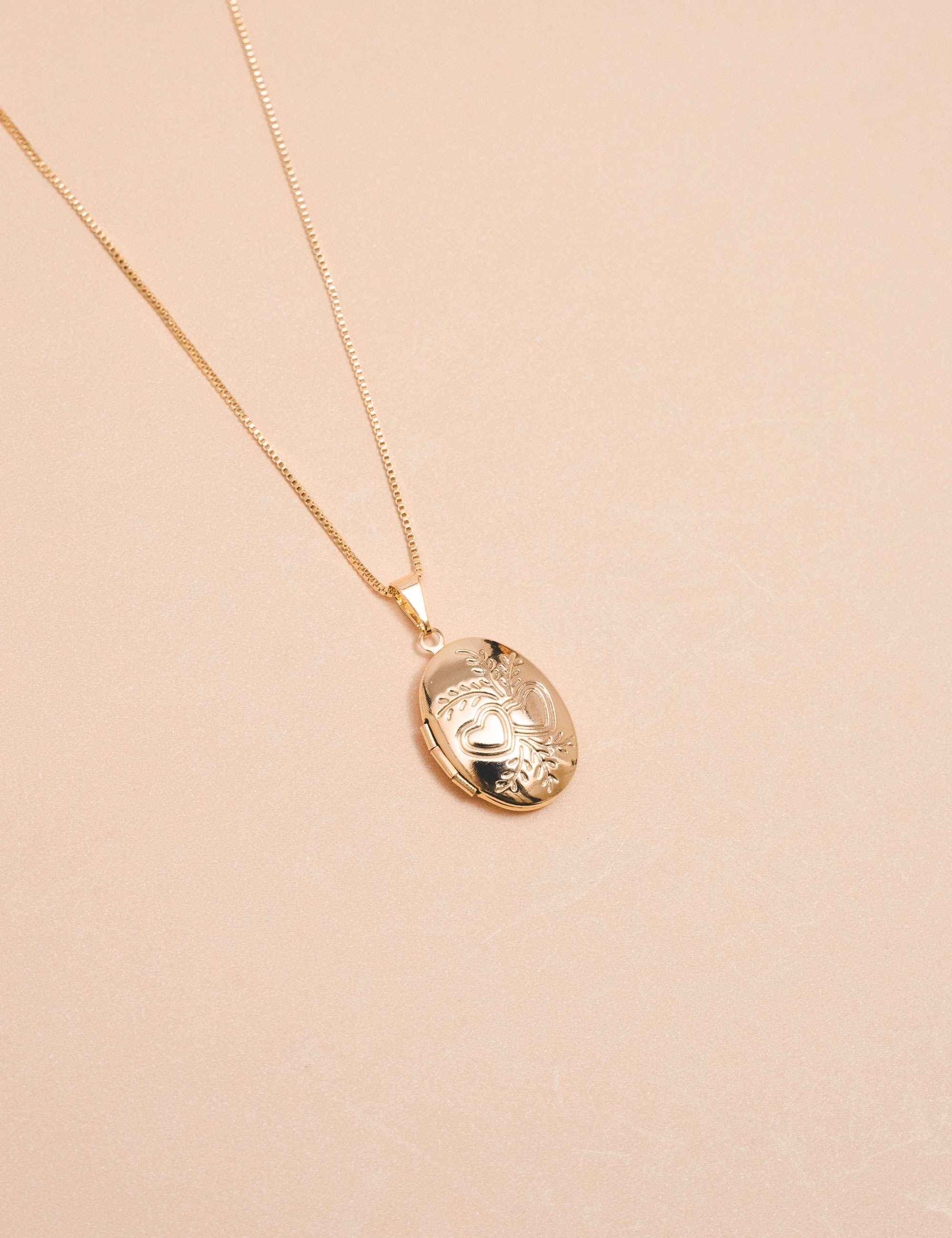 Peça: Colar relicário com detalhes encantadores. Esta peça é uma adição charmosa e significativa ao seu estilo, permitindo que você carregue lembranças especiais com elegância e delicadeza.