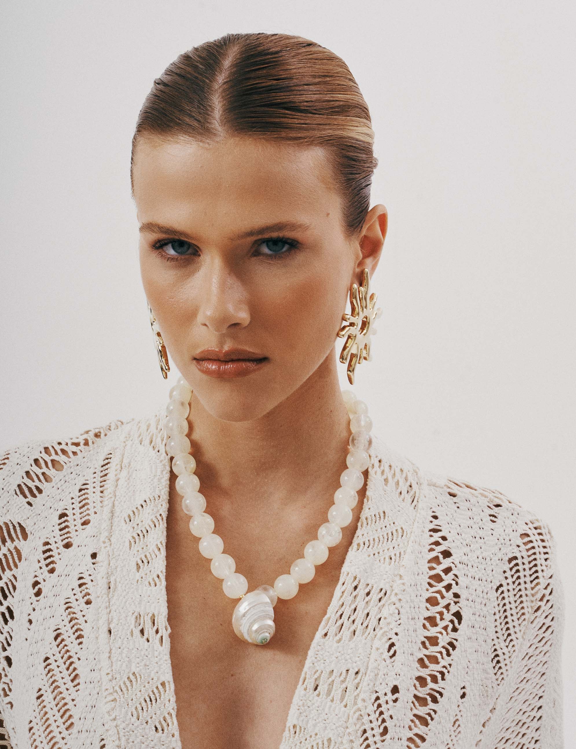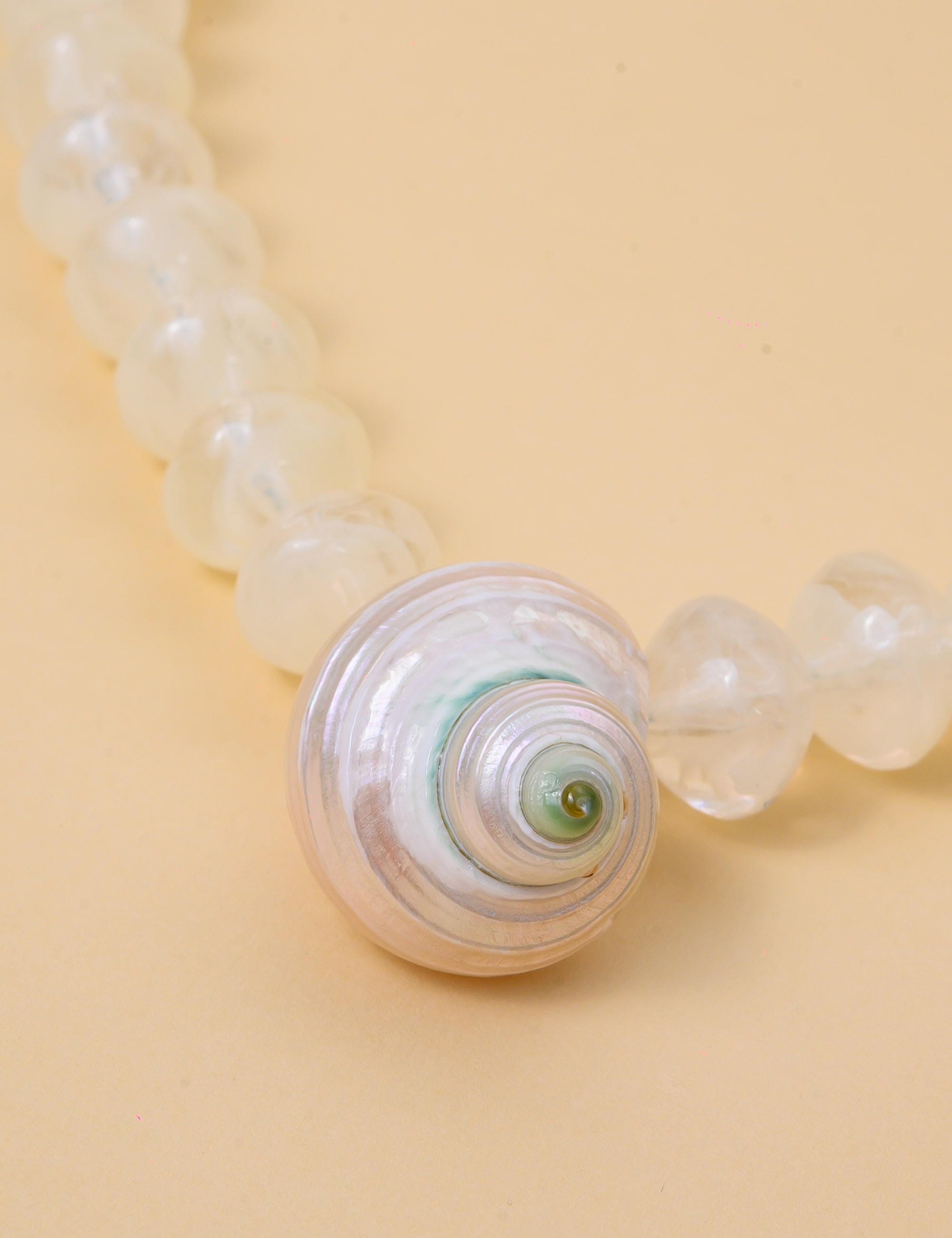 Colar com bola off white e pingente de caracol, delicado e elegante. Perfeito para adicionar um toque leve e sofisticado ao seu visual.