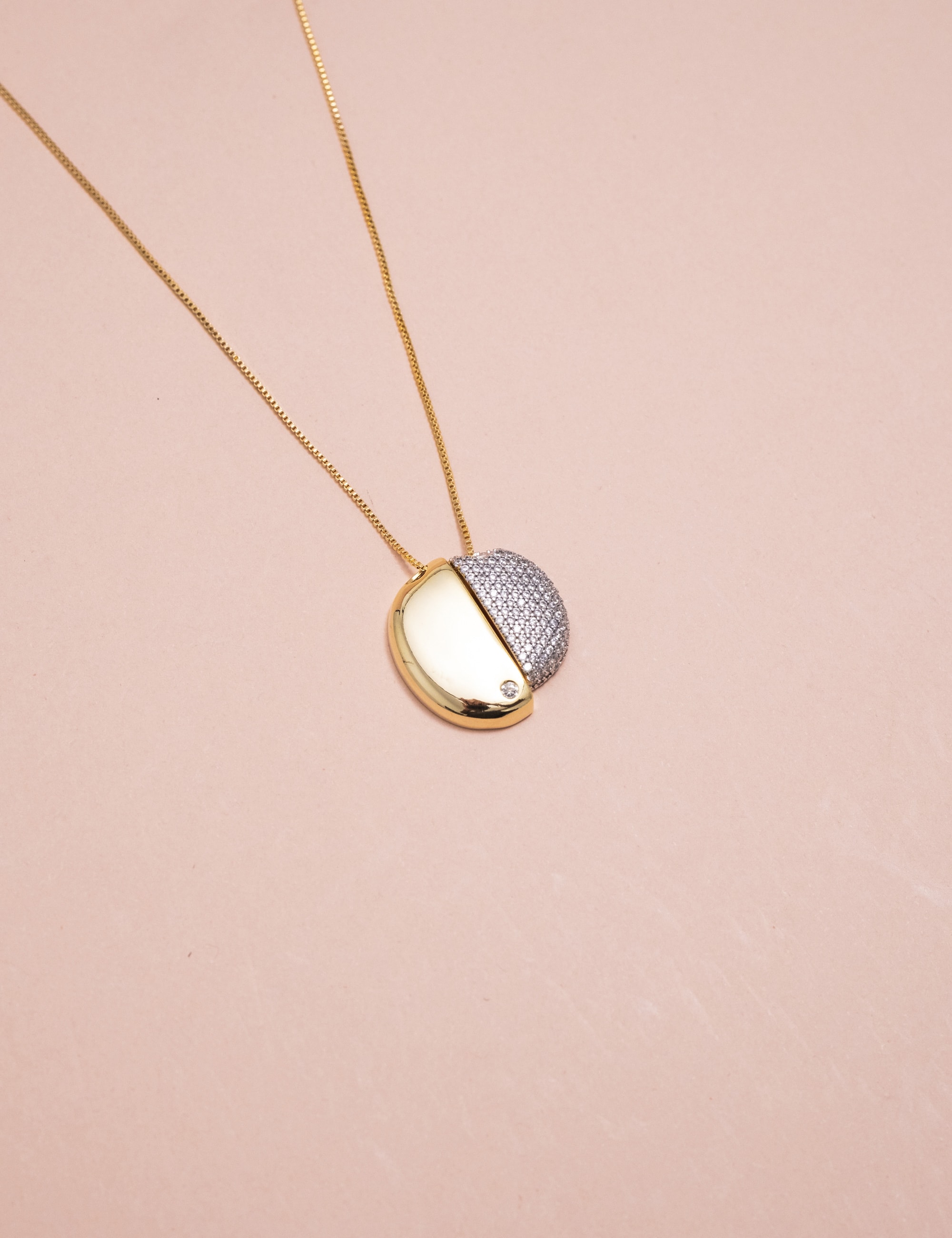 Colar em ródio branco com acabamento sofisticado, peça versátil que combina elegância e modernidade para compor diferentes produções.