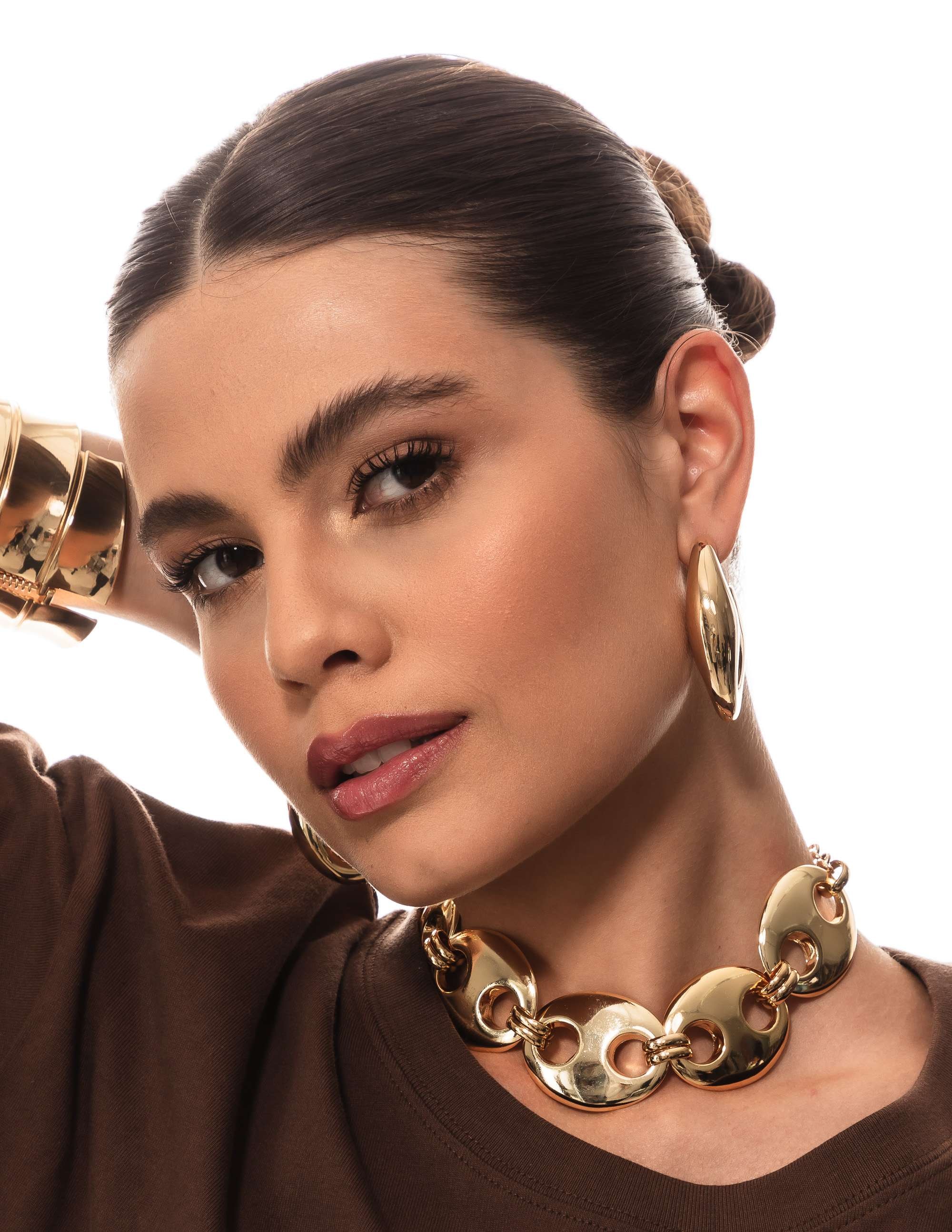 Peça: Colar máxi em formato de clap soda abaulado, é uma escolha versásil para dar aquele up no look.