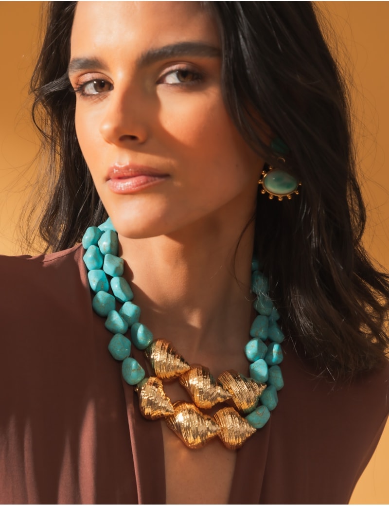Colar Turquesa Concha Gold Banho: Ouro 18k Garantia: 6 meses