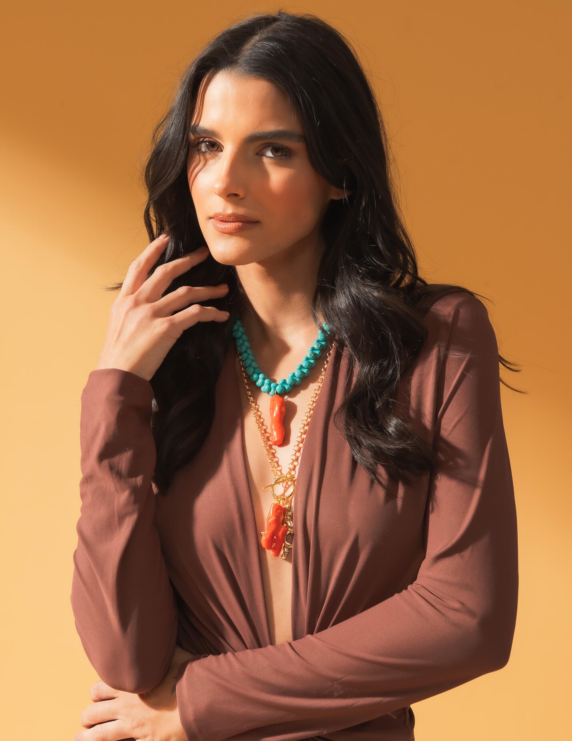 Todos os nossos metais são banhados a ouro, possuem camada protetiva para bijuterias finas e também possuem camada de metal precioso em sua composição. As bijuterias precisam de cuidados, limpe-as com flanela seca e macia, evite contato direto com cosméticos, areia, praia e piscina.