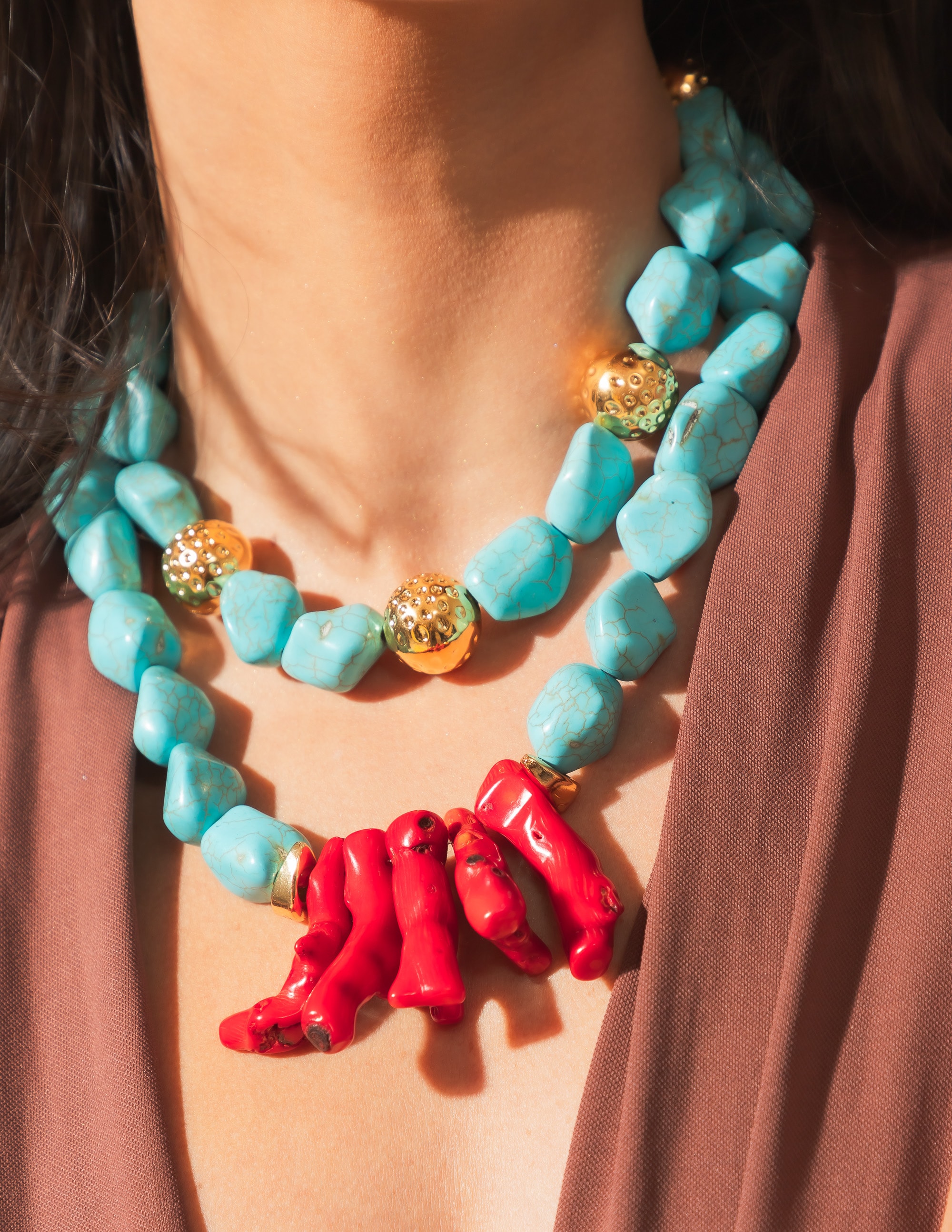COLAR OURO ESFERAS TURQUESA - CO29185V001