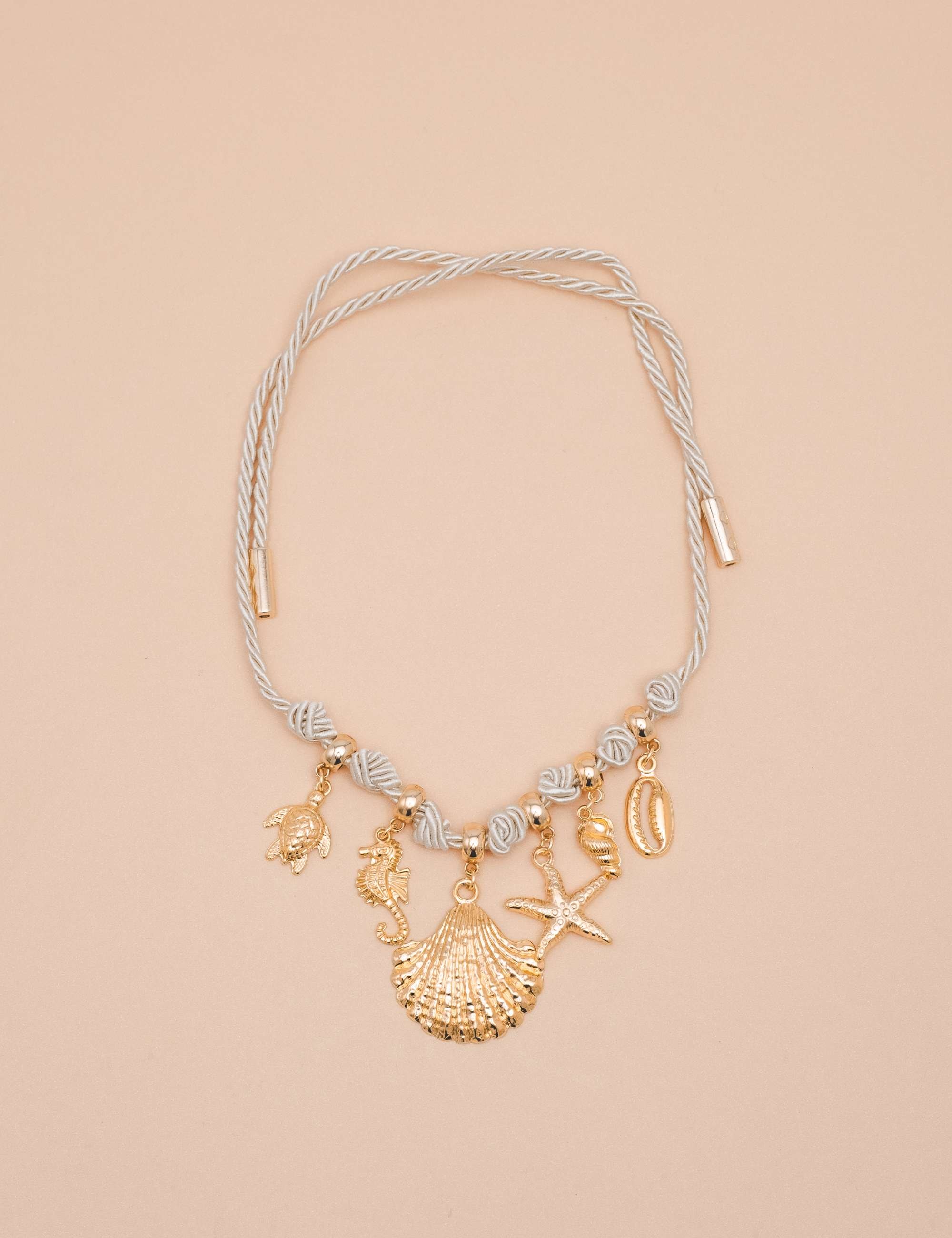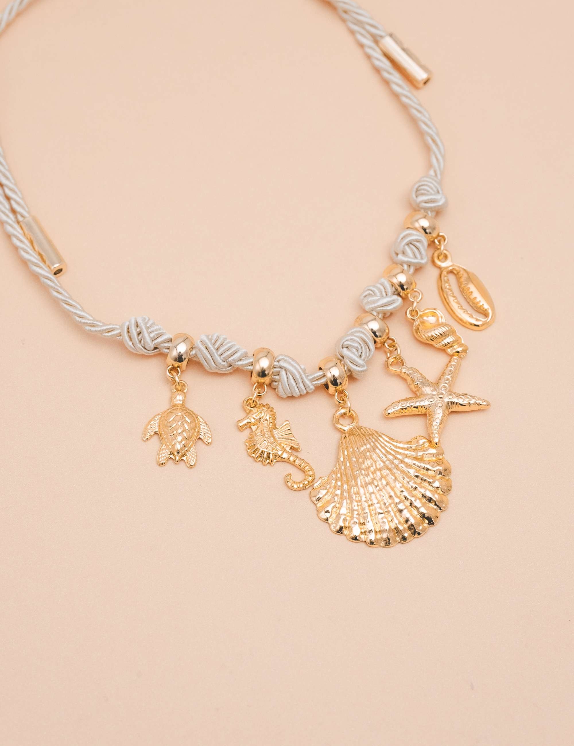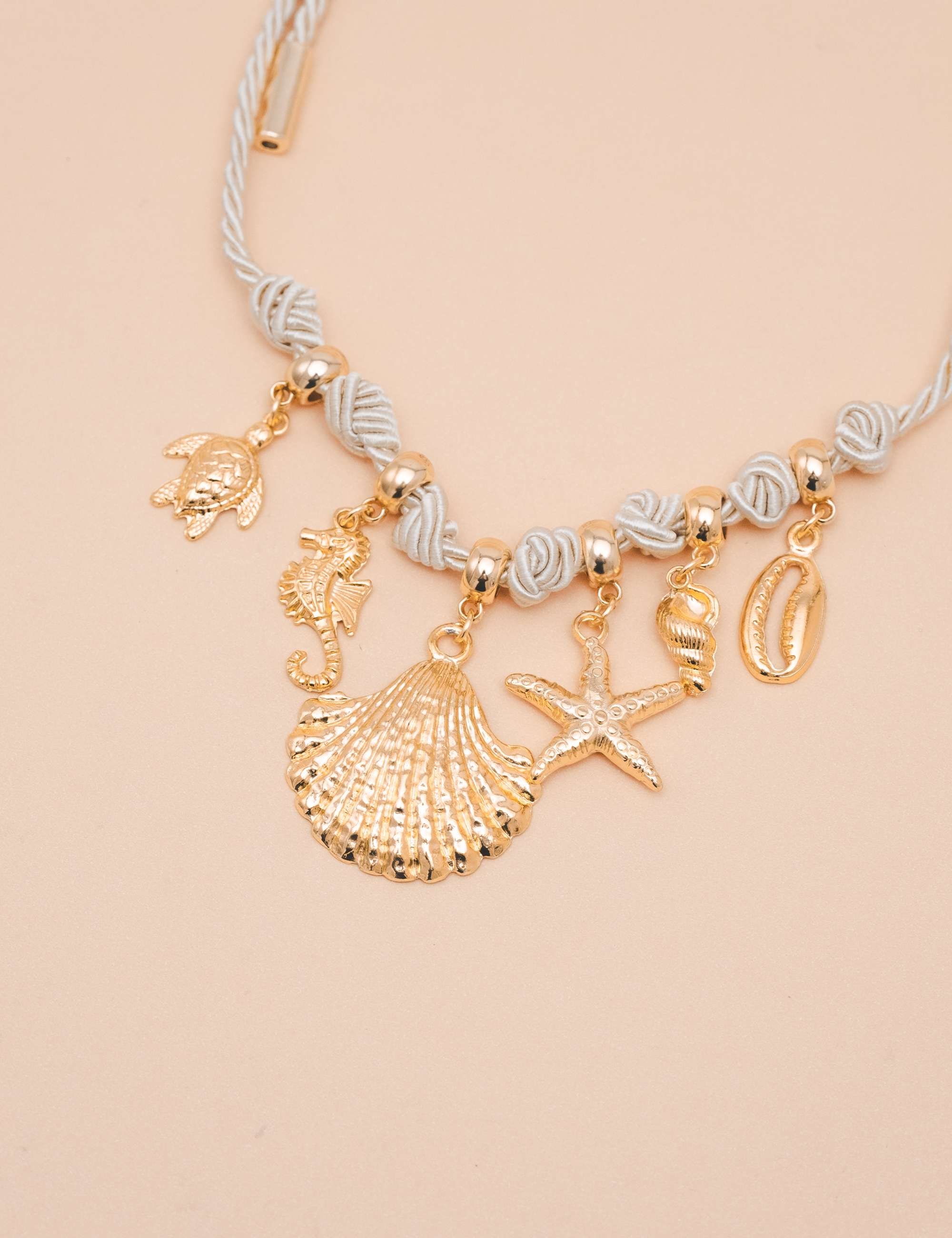 Colar de cordão São Francisco em formato de corda com pingente de concha texturizada, búzios, cavalo marinho, estrela do mar e acabamento com ponteiras. Peça cordão São Francisco, pingente alta fusão, banhado a ouro, verniz e antialérgico. Colar que traz versatilidade e aquele ar HANDMADE que cada vez mais faz parte do mundo fashion, o simples que se torna sofisticado.