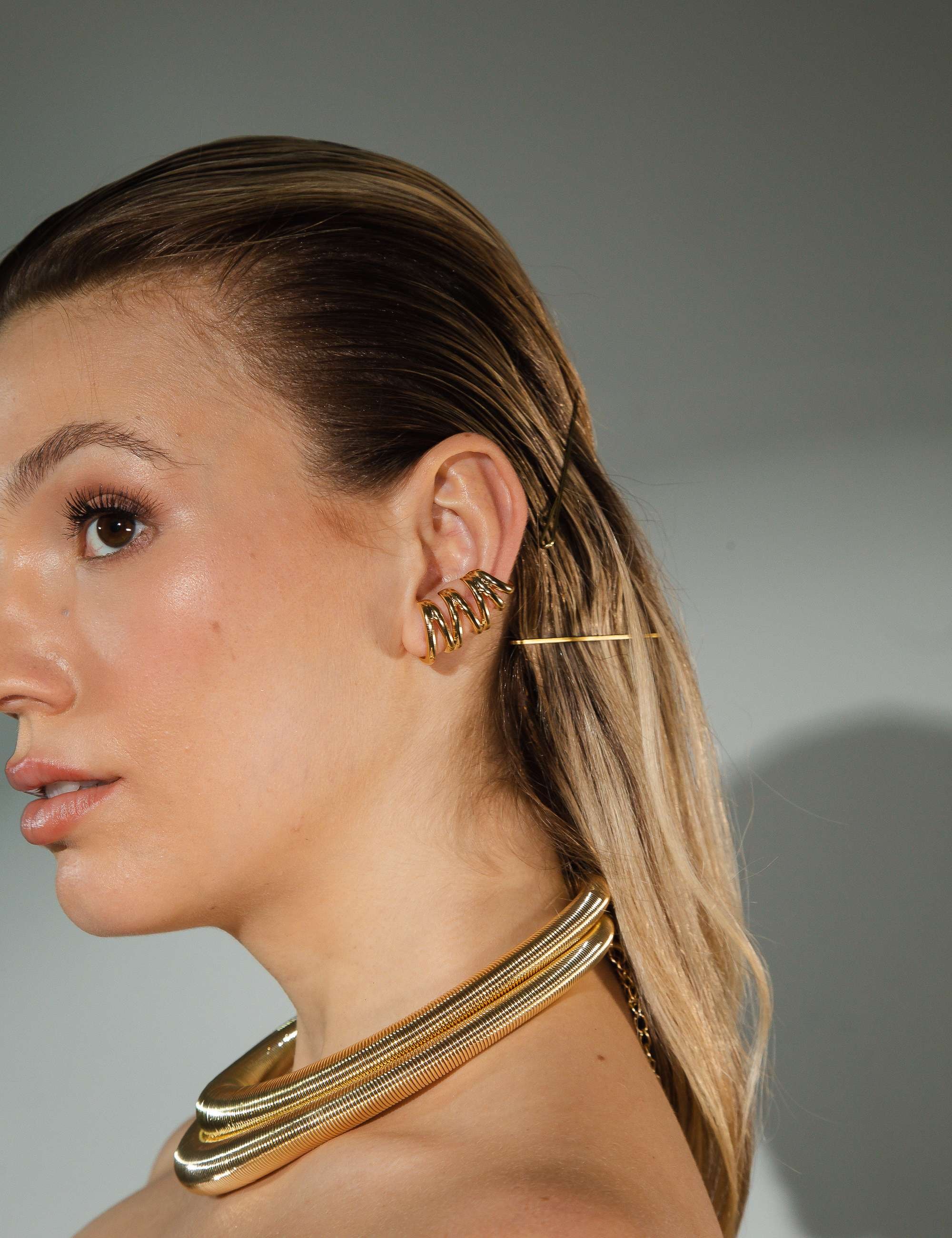 Brinco earcuff com formato zig zag . Peça de latão, banhado no ouro, verniz e antialérgico. Os brincos cada vez mais bem ganhando espaço e destaque no mundo dos acessórios, cada vez mais estilosos e imponentes para traduzir o lado imponente que a mulher traz em sua feminilidade.