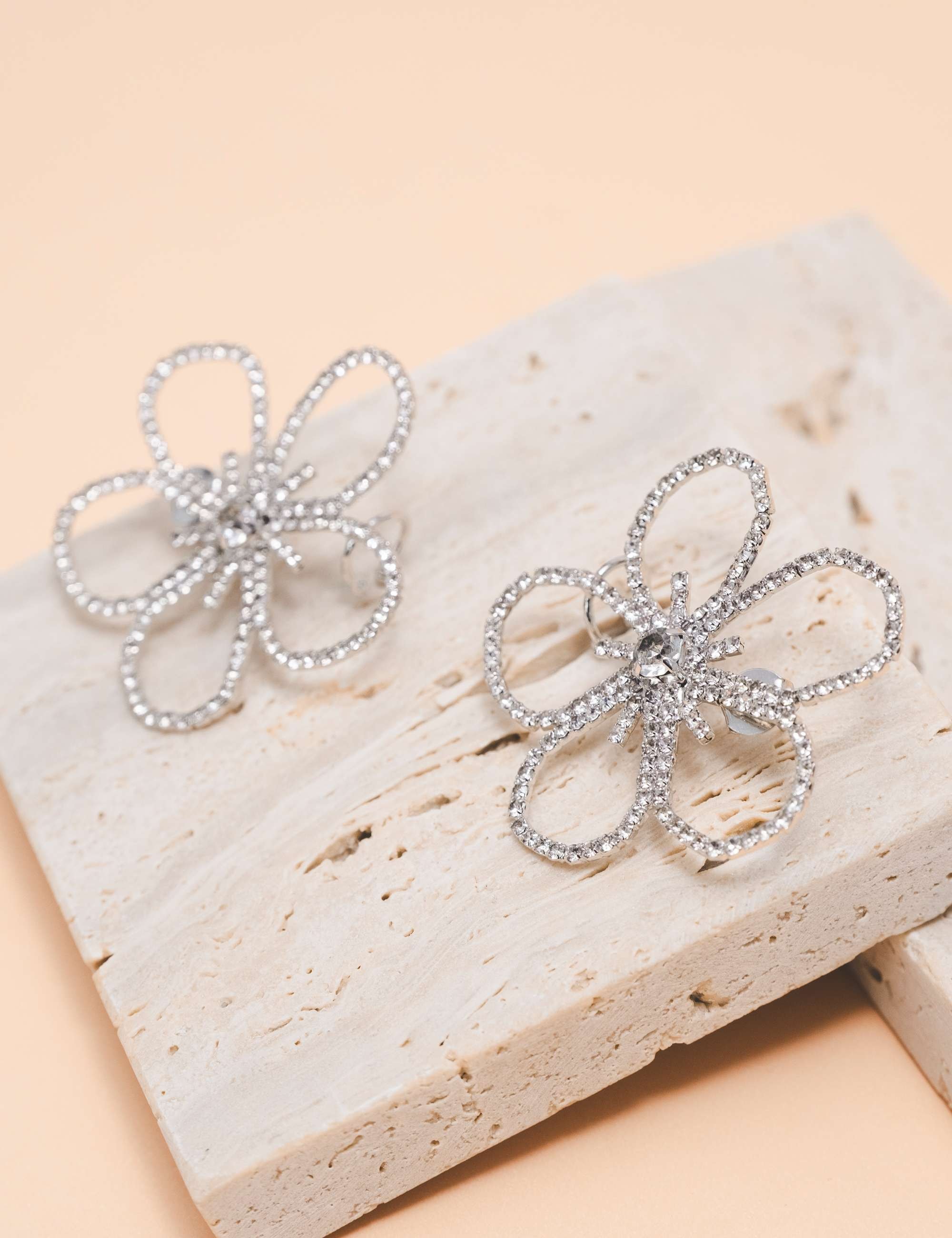 Peça: Brinco earcuff, feito a mão e formato de flor, strass e latão.