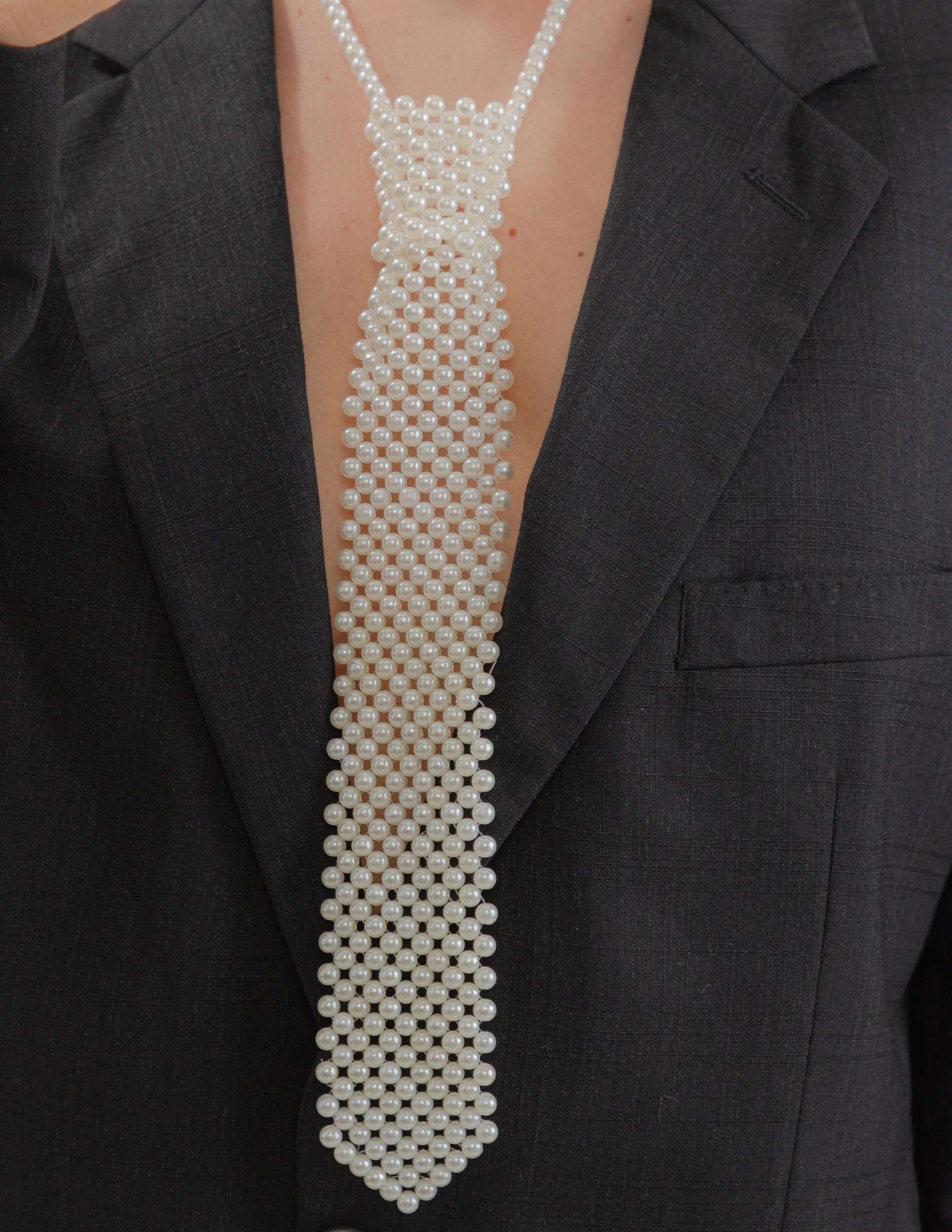 Peça: O requinte atemporal encontra a sofisticação moderna com nosso gravata em pérola resinada, delicadamente detalhado com elo português. Uma peça que