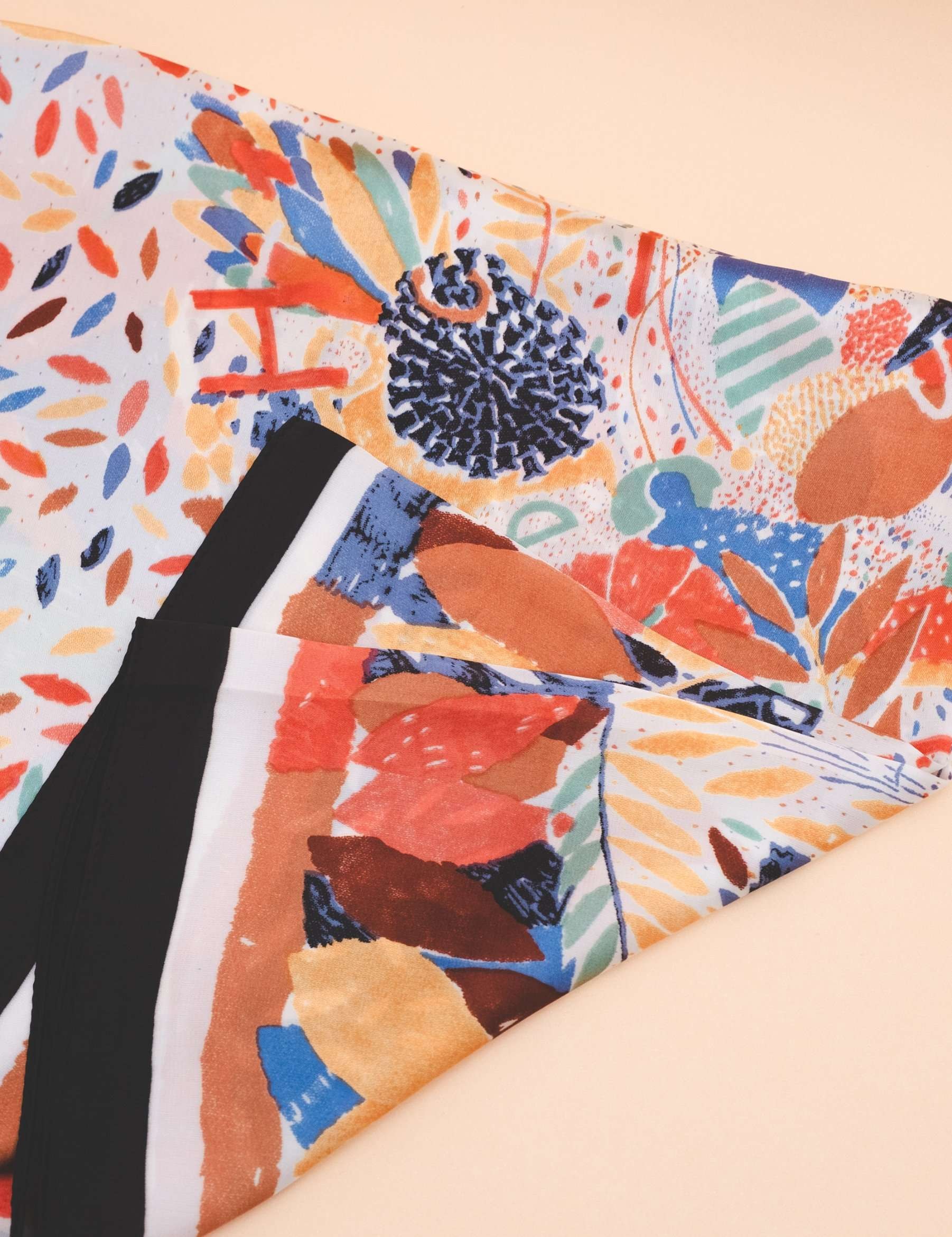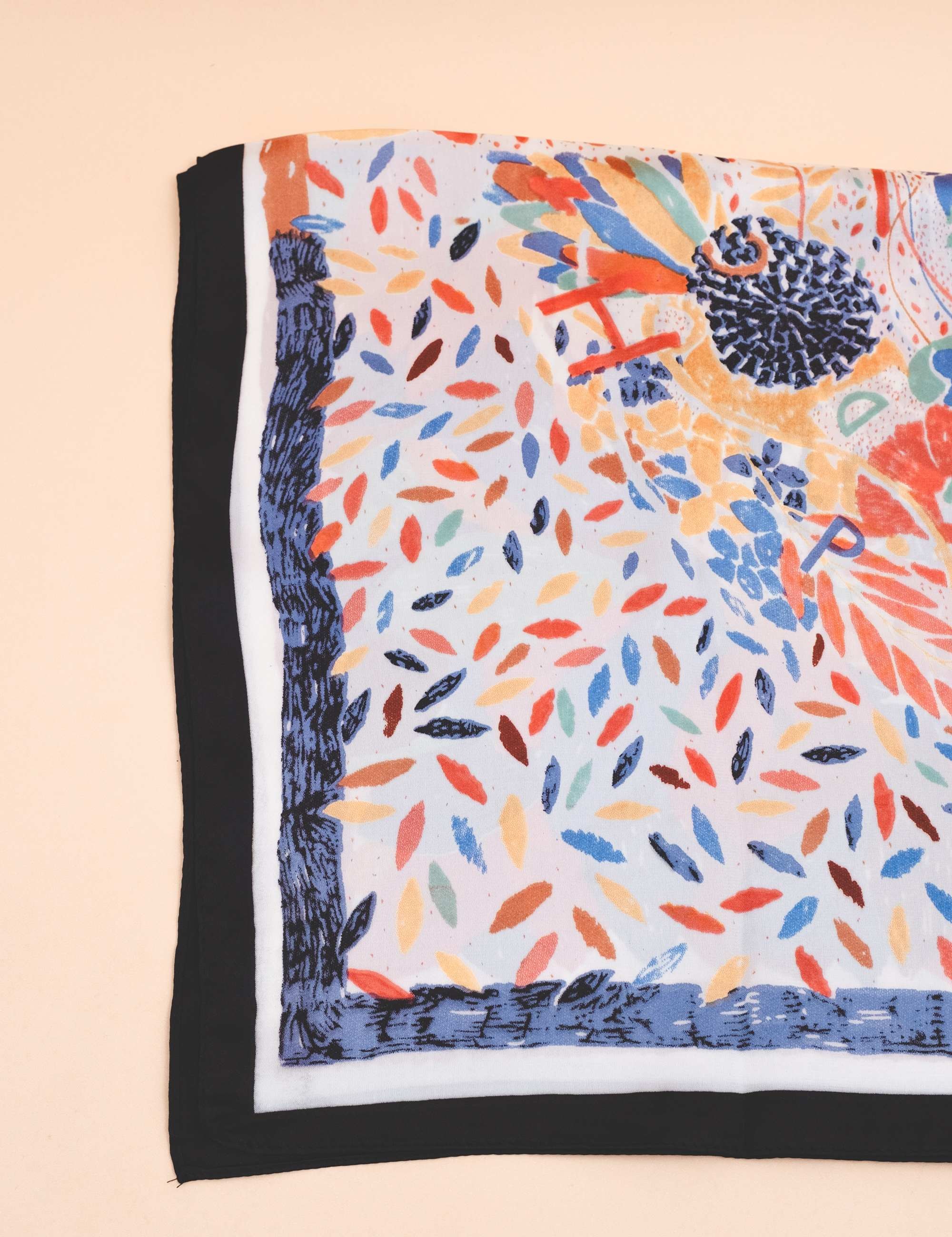 Lenço 70x70 com detalhes na sua estampa abstratas e laterais lisas. Peça lenço seda, tamanho 70x70. Lenços estão com tudo para a próxima estação, seja para usar na cabeça ou como detalhe em bolsas, traz aquele charme com estilo.