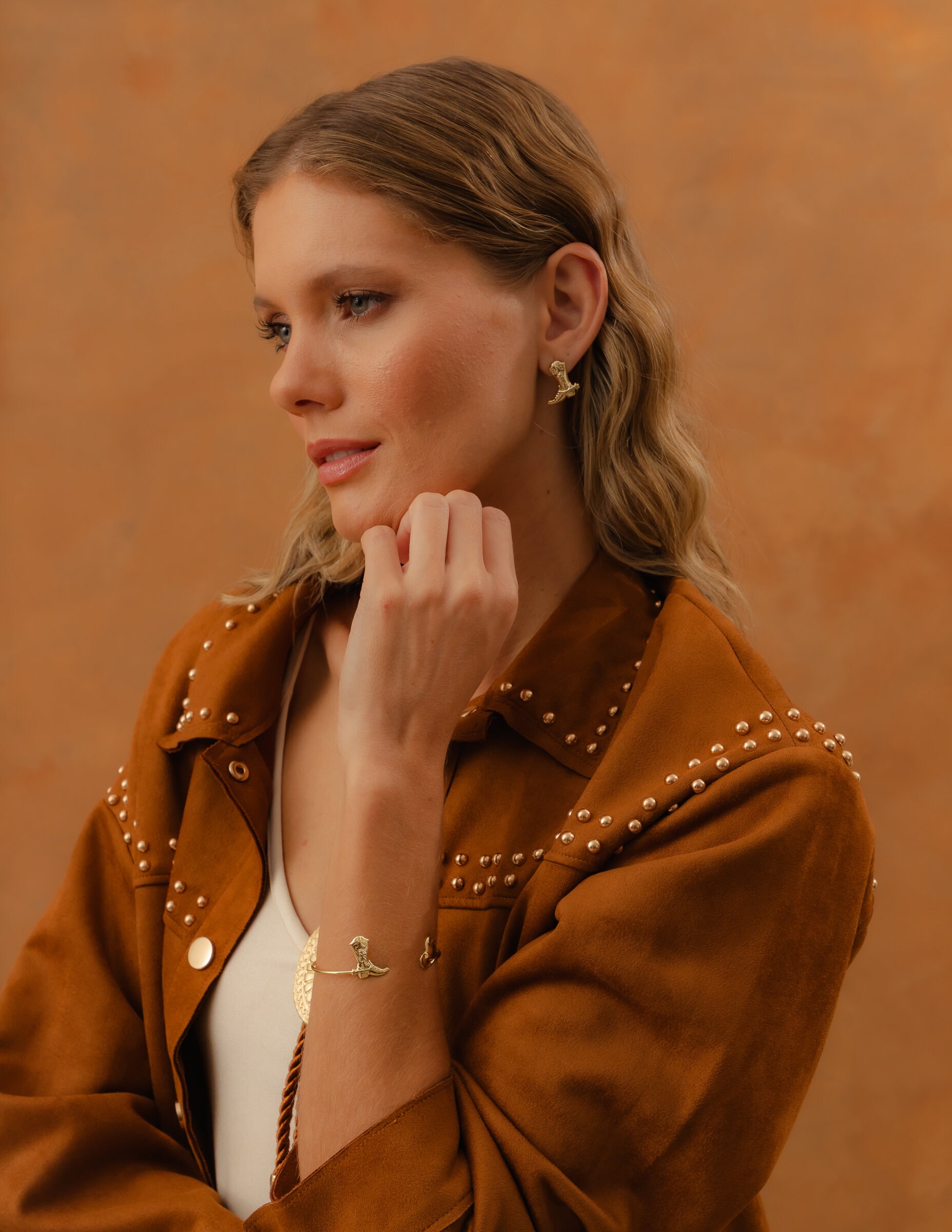 Todos os nossos metais são banhados a ouro, possuem camada protetiva para bijuterias finas e também possuem camada de metal precioso em sua composição. As bijuterias precisam de cuidados, limpe-as com flanela seca e macia, evite contato direto com cosméticos, areia, praia e piscina.