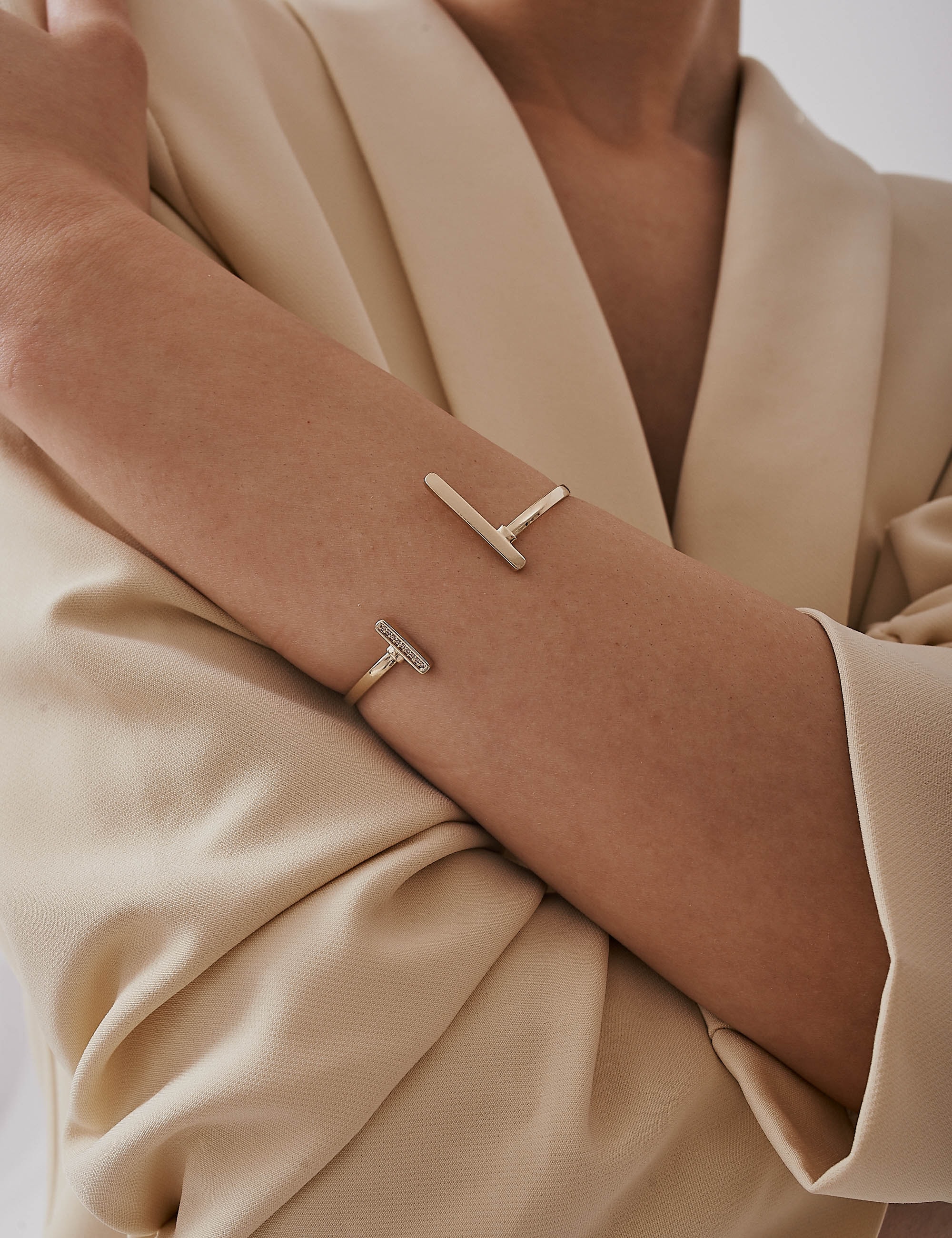 Esta pulseira ajustável combina estilo e conforto, apresentando pontas em formato de "T" que adicionam um toque moderno. Feita para se adaptar a diferentes tamanhos de pulso, é perfeita para uso diário ou ocasiões especiais. Leve e versátil, é um acessório que complementa qualquer look com elegância!