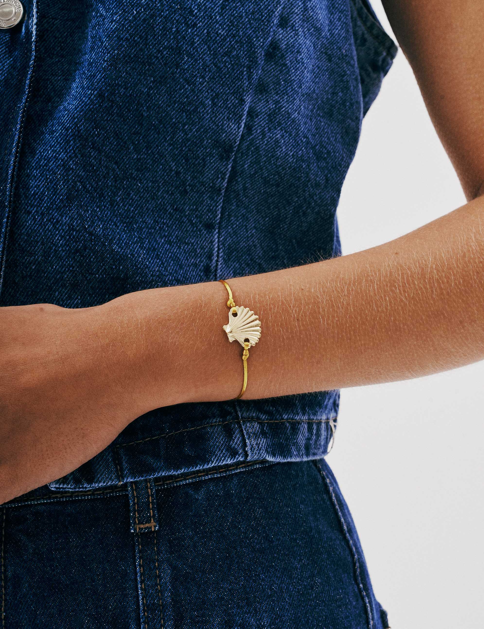 Pulseira com cordão amarelo e pingente de concha, delicada e charmosa. Perfeita para compor looks leves com um toque praiano.