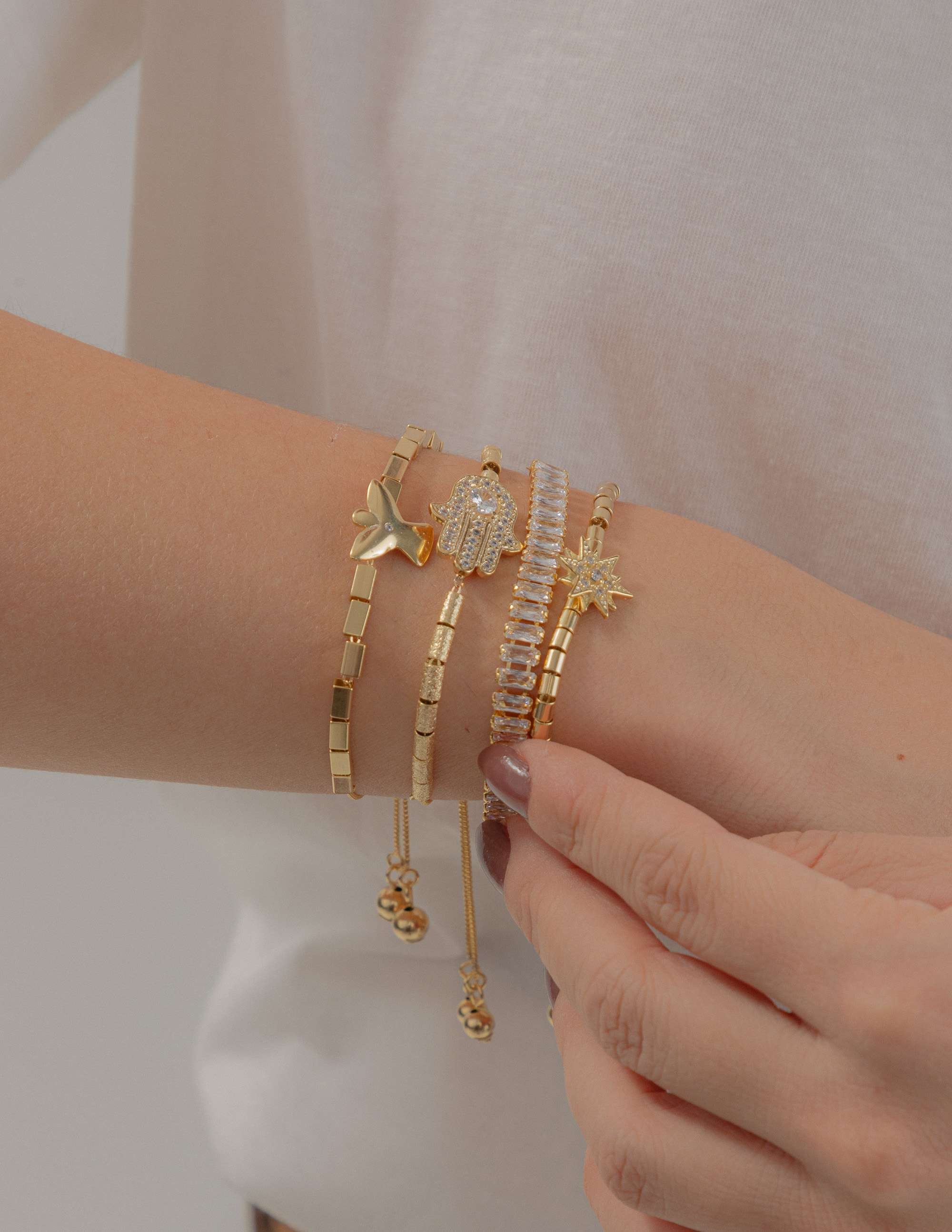 Todos os nossos metais são banhados a ouro, possuem camada protetiva para bijuterias finas e também possuem camada de metal precioso em sua composição. As bijuterias precisam de cuidados, limpe-as com flanela seca e macia, evite contato direto com cosméticos, areia, praia e piscina.