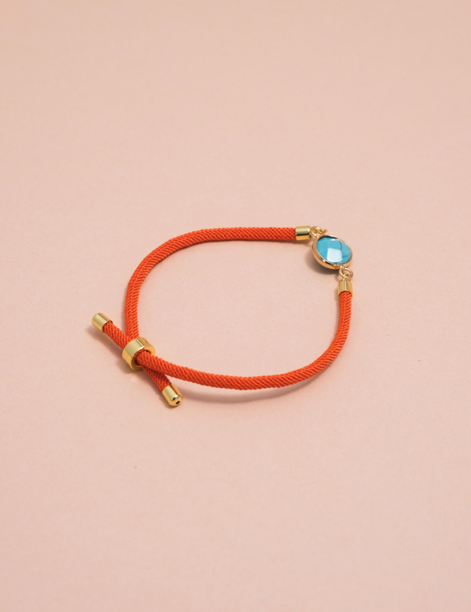 Material: Banho ouro, metal, pedra, linha de algodão, verniz e antialérgico.