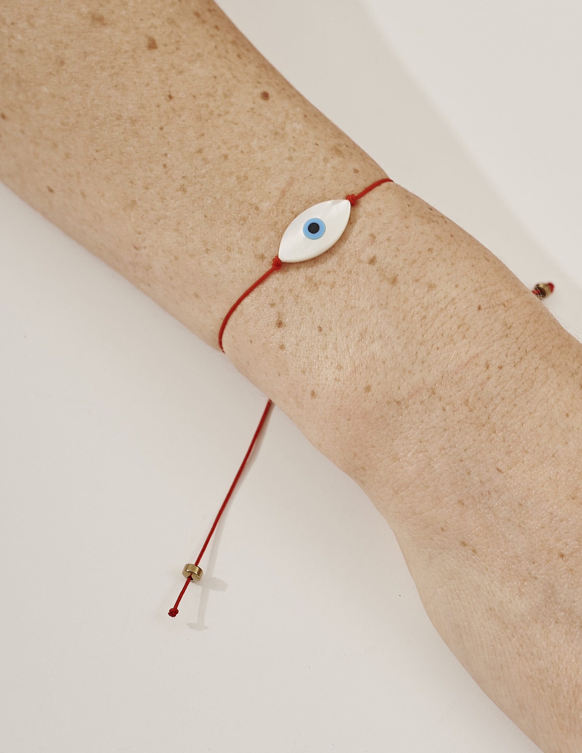 Pulseira com pingente de olho grego, trazendo um toque delicado e cheio de significado ao visual. Um acessório leve, moderno e perfeito para compor combinações no dia a dia com charme e proteção.