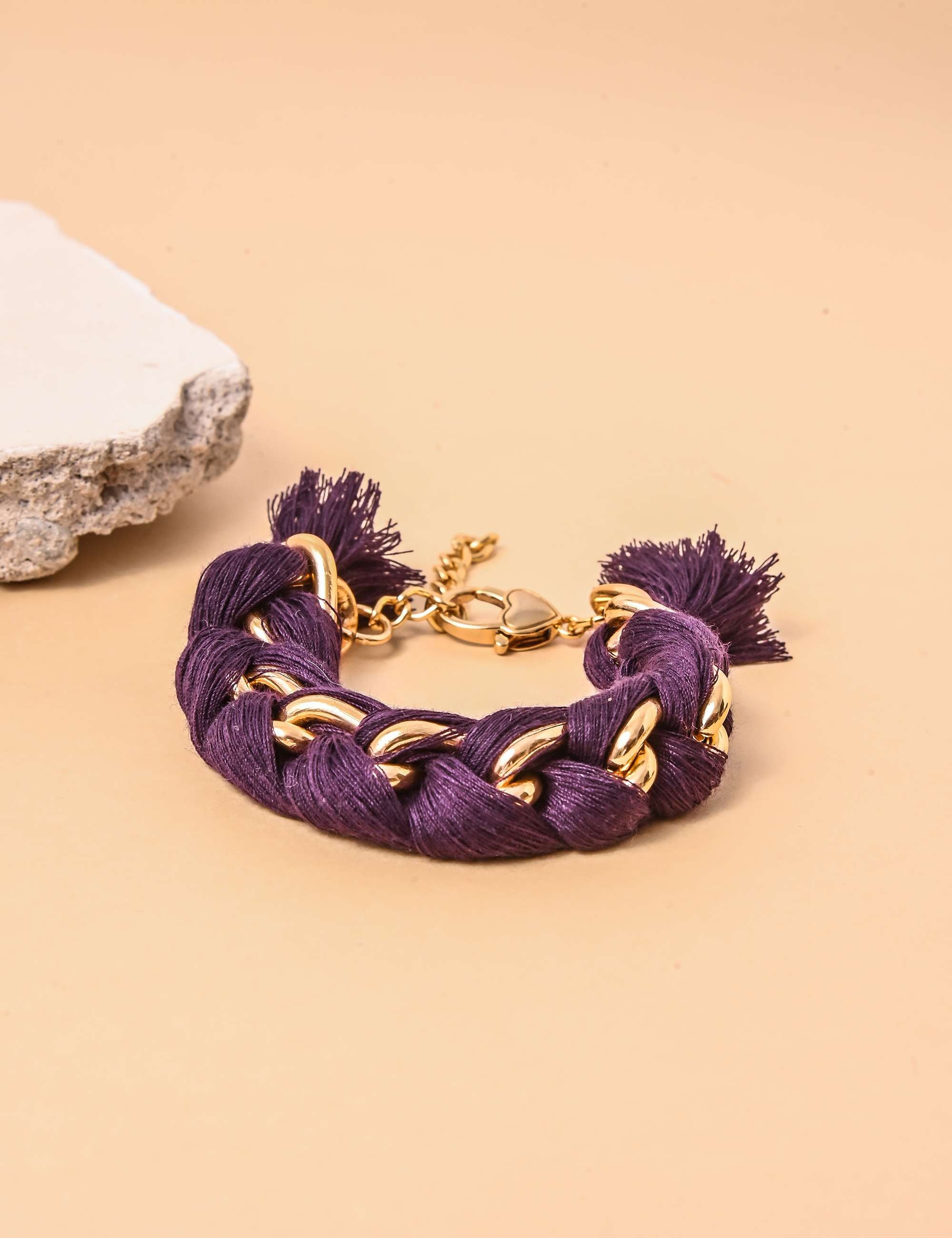 Pulseira Trançada Feita a Mão Cinza Escuro